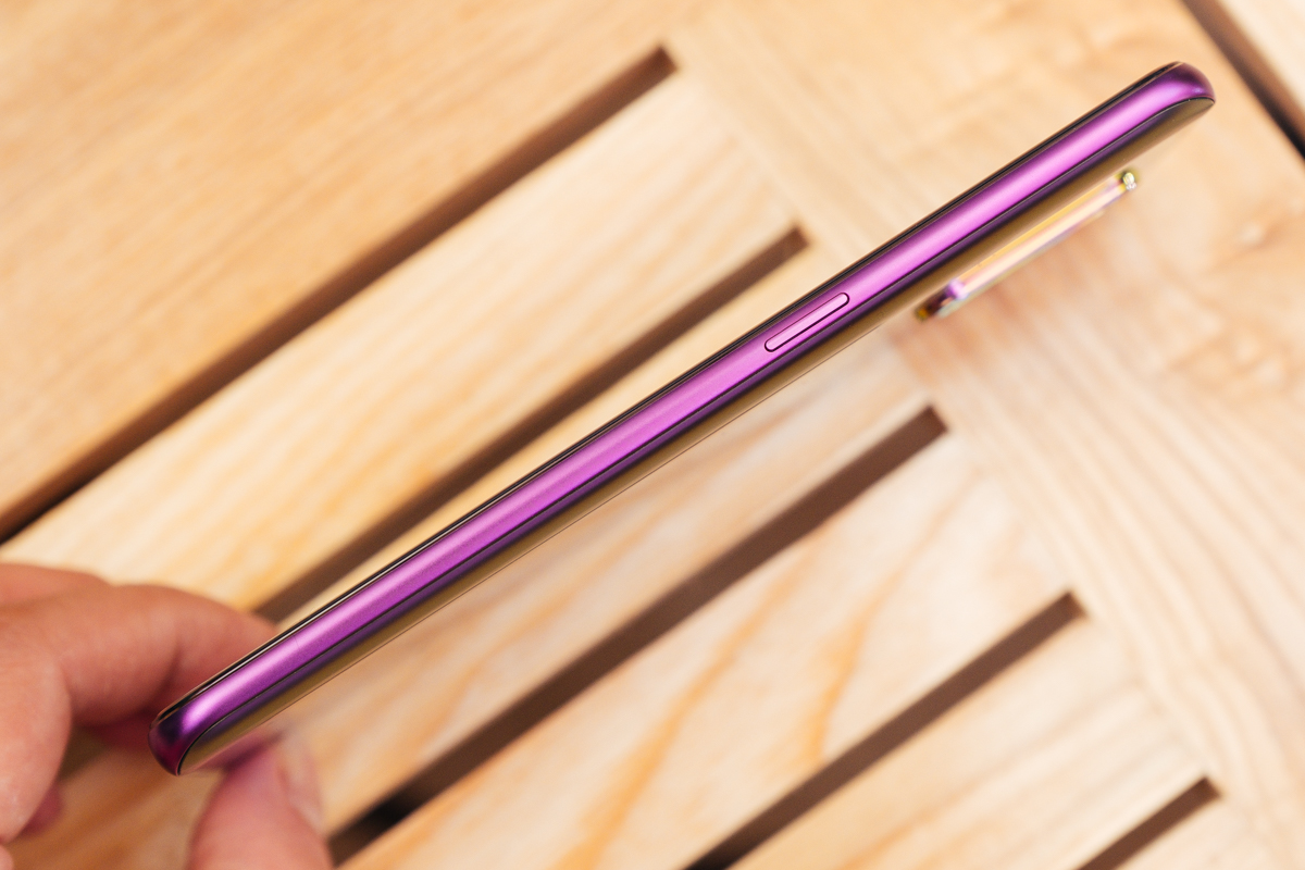 側邊為電源按鍵,而且是延續背蓋的紫色那一邊過來。