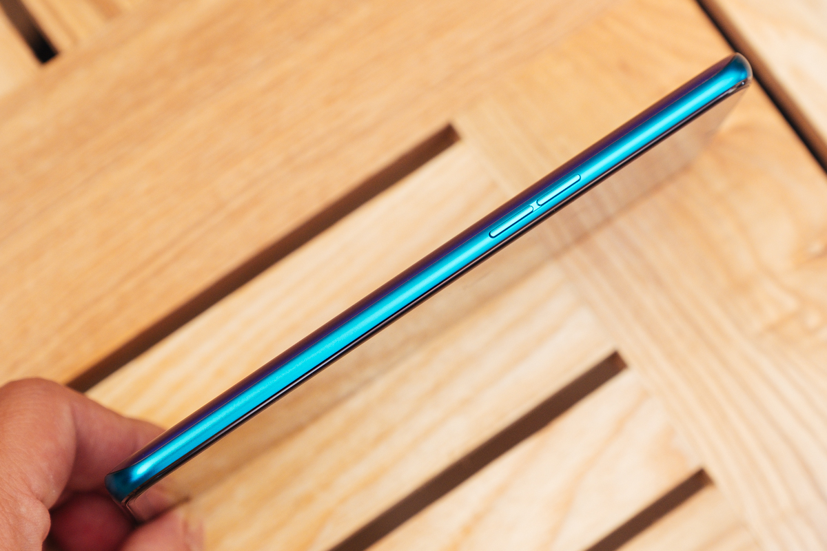阿湯所拍攝的這支 OPPO R17 Pro 顏色為霧光漸變色,有一種藍色和紫色打太極的感覺,非常無違和感的交錯融合,而且表面是霧面感,幾乎不沾指紋,這顏色真的超美,不論男生或女生用都很適合的混色。
