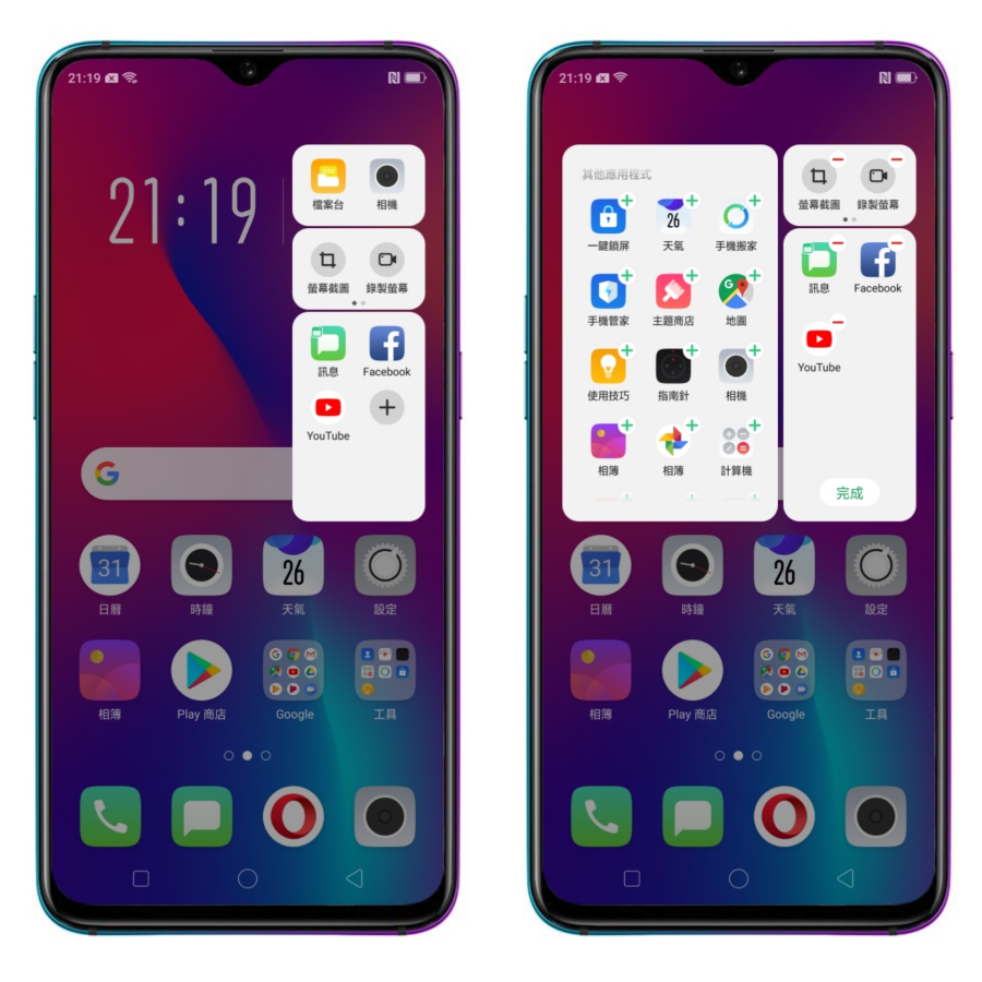 智慧側邊欄,可以從右側滑出一個快速鍵區域,將你常用的 APP 自訂在這裡面,隨時拉開就可以點擊 APP 開啟。