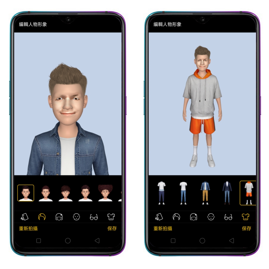 在萌拍這個內建功能中,還包含了 OPPO 專屬的 Omoji 功能,還能建立自己專屬的 Q 版人像。