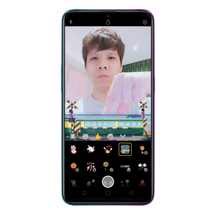 相機內建功能還有一個很好玩的萌拍,可以拍攝出很多可愛有趣的照片,而且 OPPO R17 Pro 內建的選擇相當的多。