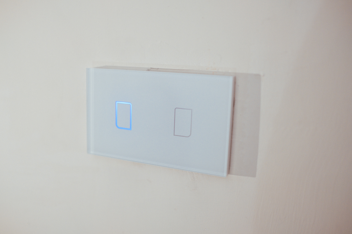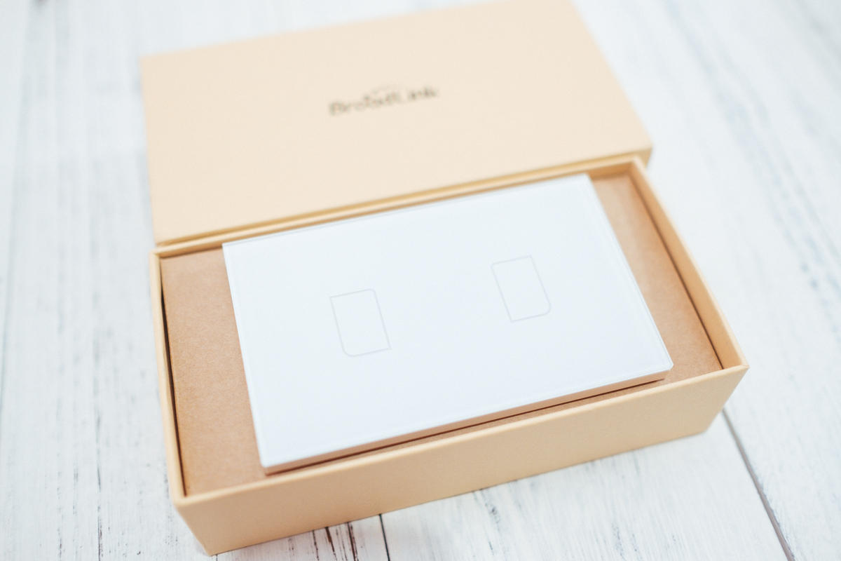 今天先來分享電燈開關的部份,這款是 BroadLink TC2,然後是雙開關的版本,在淘寶就可以買到美規(台灣可用的),單開、雙開、三開的版本都有,而且只要單火線就可以安裝,比起 Sonoff 更加適合台灣使用,如果只買這個開關,就是普通的觸控開關,如果想要用手機控制甚至結合 Siri 語音,就得另外再買一台 RM pro+ 來搭配,往下慢慢來介紹。