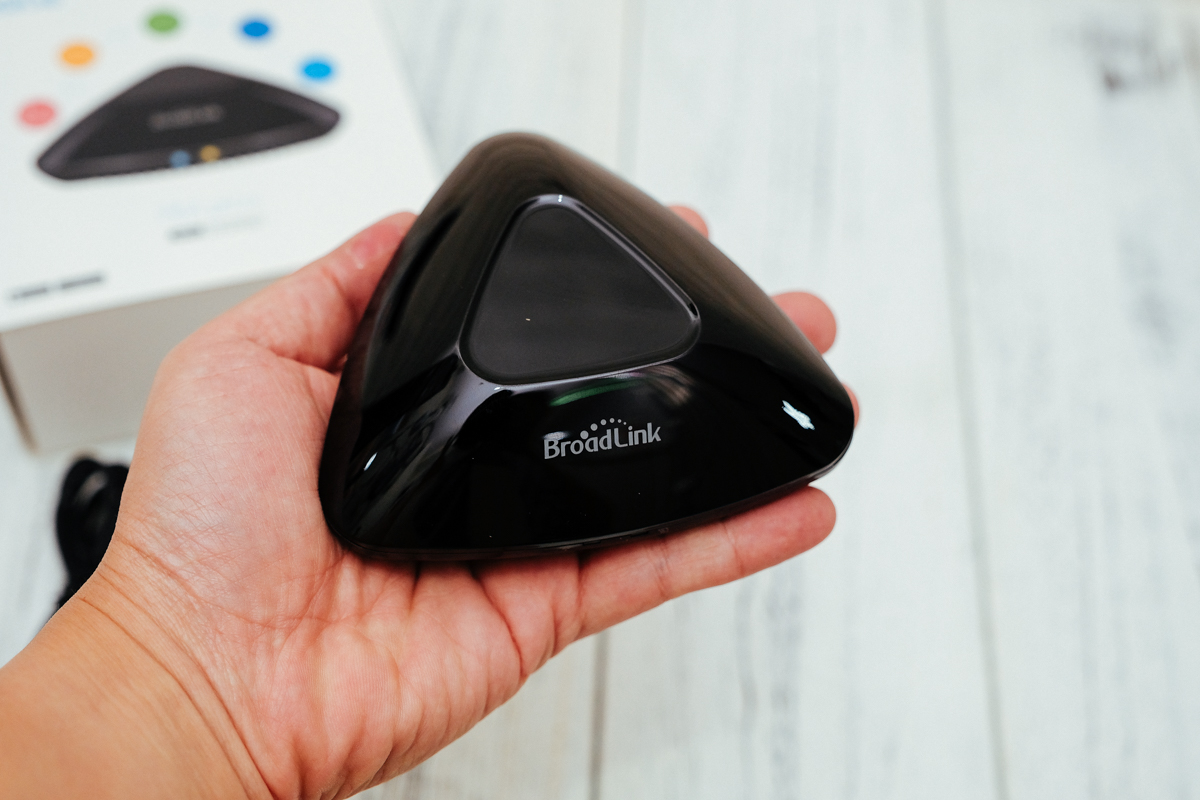 接下來,如果你想要搭配手機來控制開關,就得再買這台 RM pro+,原因很簡單,因為電燈開關不是用 Wi-Fi 控制,而是透過射頻信號來控制的,因此會需要一個發射信號的主機來控制,但加買這台不是單純的用來控制 BroadLink 的開關而已,這台也同時是一款紅外線 + 射頻信號的控制裝置。