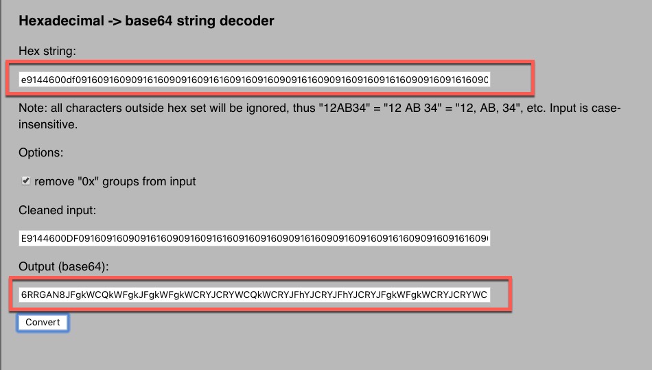然後剛取得的代碼是 hex,而在 HA 裡要設定的是 base64,所以要複製到下面網頁進行轉檔,就這樣依序的將代碼產出設定到 HA 裡即可。