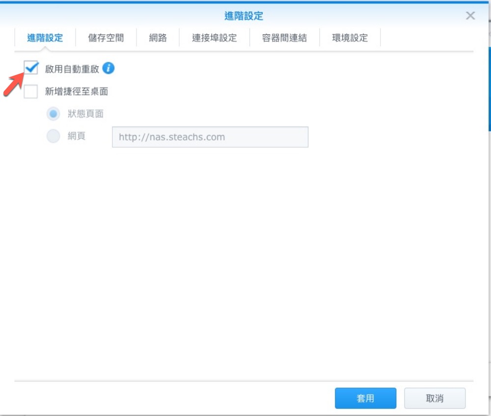網路中,勾選下方的 Docker Host 使用相同網路。