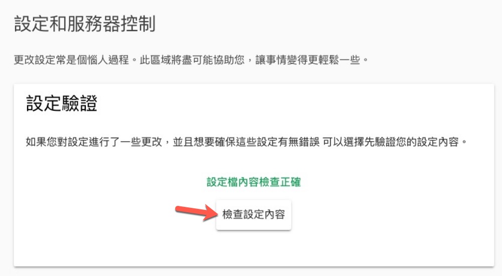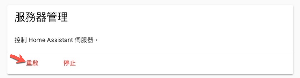 先點擊檢查設定內容,看到檢查正確後再重啟 HA。重啟在同一個頁面的下方可以看到。