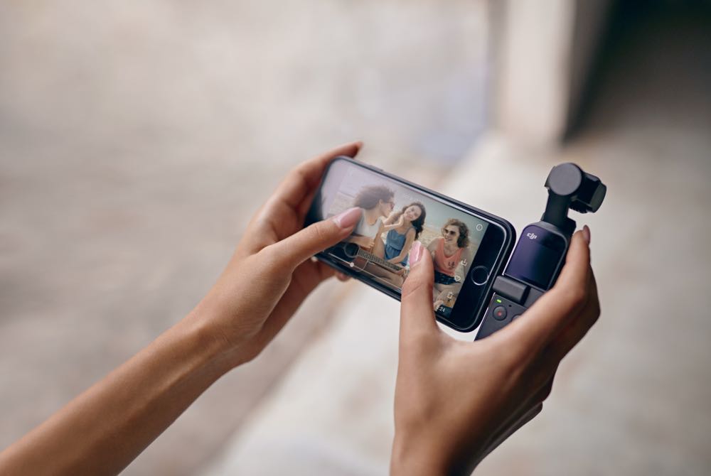 而 Osmo Pocket 還有設置支援 iOS Lightning 與 USB-C 的孔位,用戶也能透過全新的 DJI Mimo app 來自動開啟並充當顯示螢幕的功能,甚至使用新的 Story 模式選擇影片主題,控制轉場、調色與背景音樂選擇,用最快速的方式來創作短片並且與親人好友一起分享。