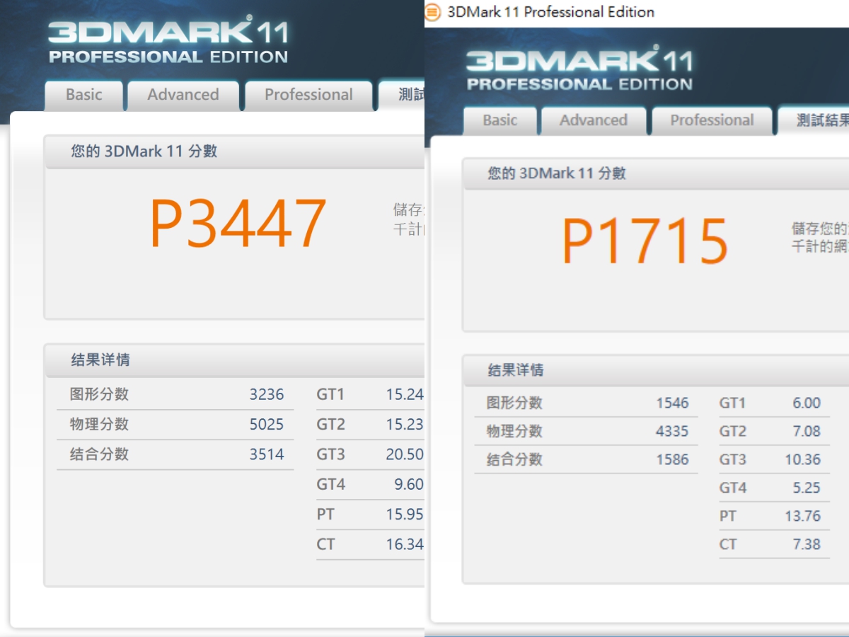 在獨立顯卡的差異下,如果你平常只用來上網、文書處理等簡單操作,那麼不會有太大的差異感受,但是如果有在修圖,剪影片或繪圖等,那就會差很大,我們用 3DMark 來看看效能分數,足足差了一倍。