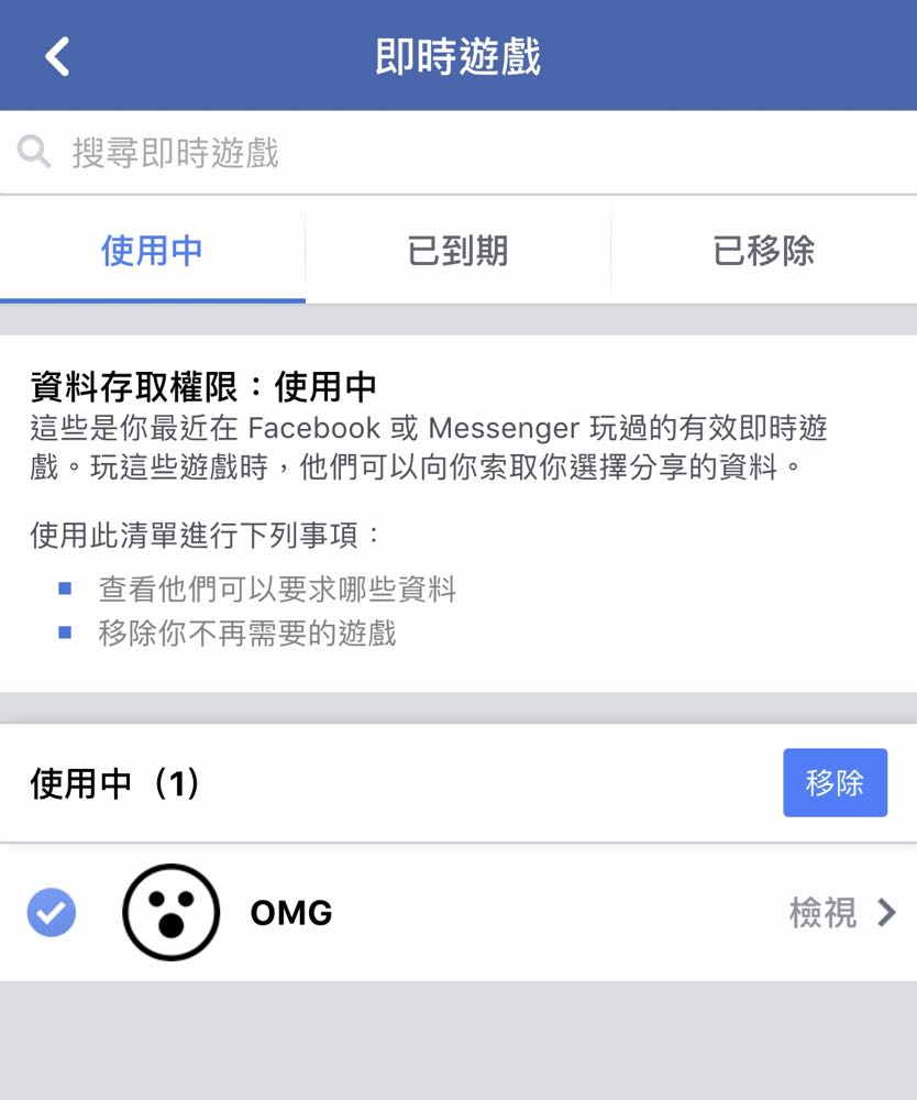 首先大家請先深呼吸...《OMG》就只是臉書上的一個即時遊戲,它所擁有的權限就只有在要玩的時候我們所同意的那些權限,包括有