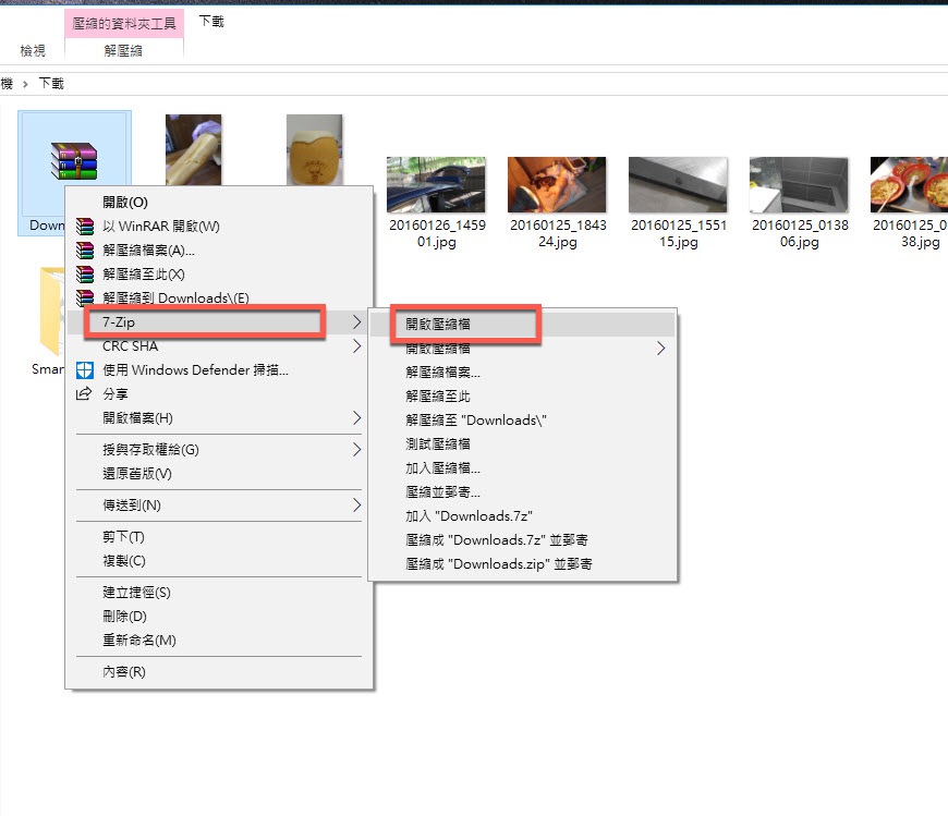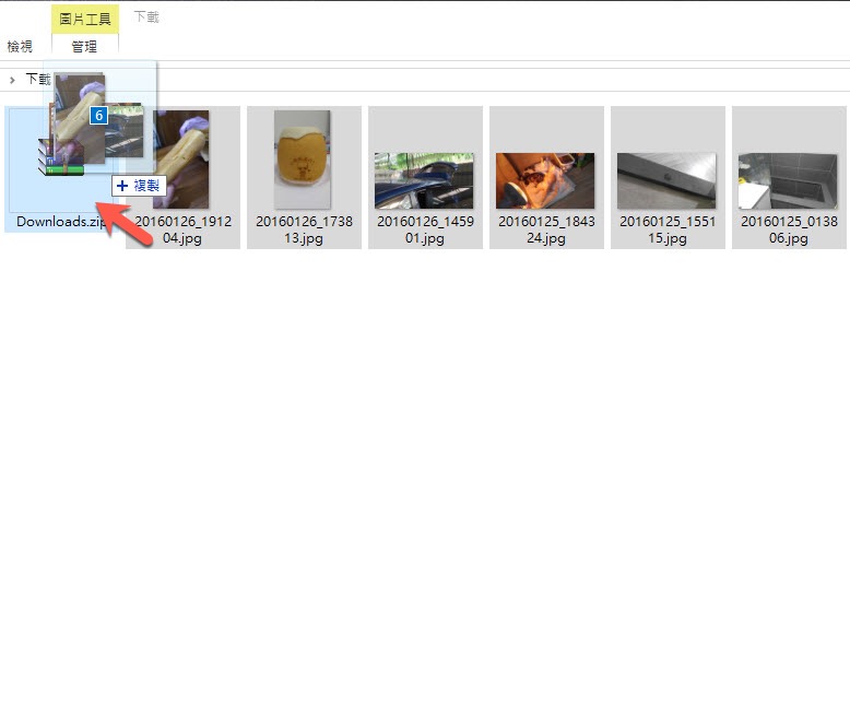 首先,先舉一下例,Downloads.zip 這個壓縮檔案,如果你想將畫面上的其他圖檔加進去,其實不需要解壓縮後再重新打包,往下來看。