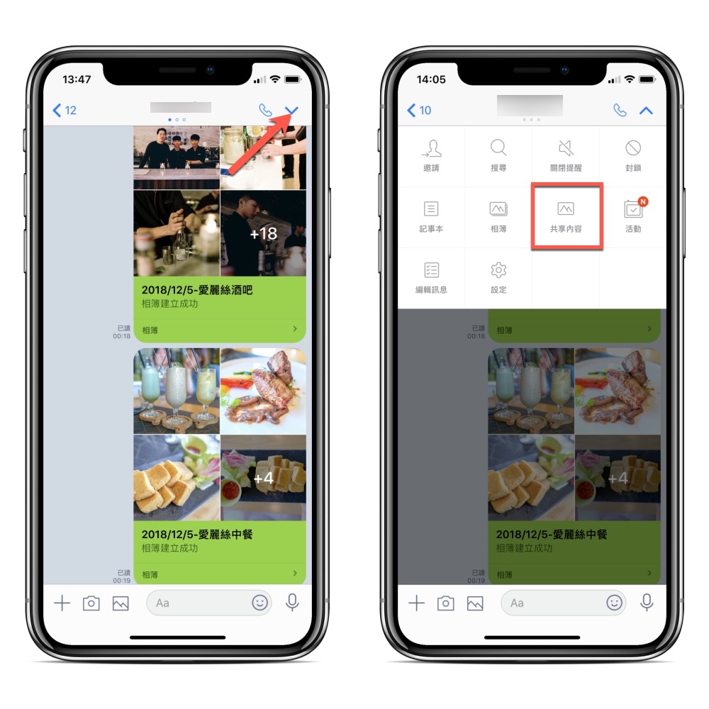 目前在 iOS 上先更新,只要在任何的聊天視窗中,點擊右上角的選單圖示後,就會看到共享內容這個功能。