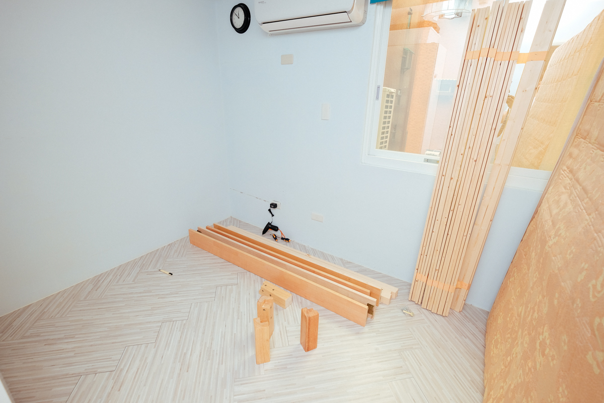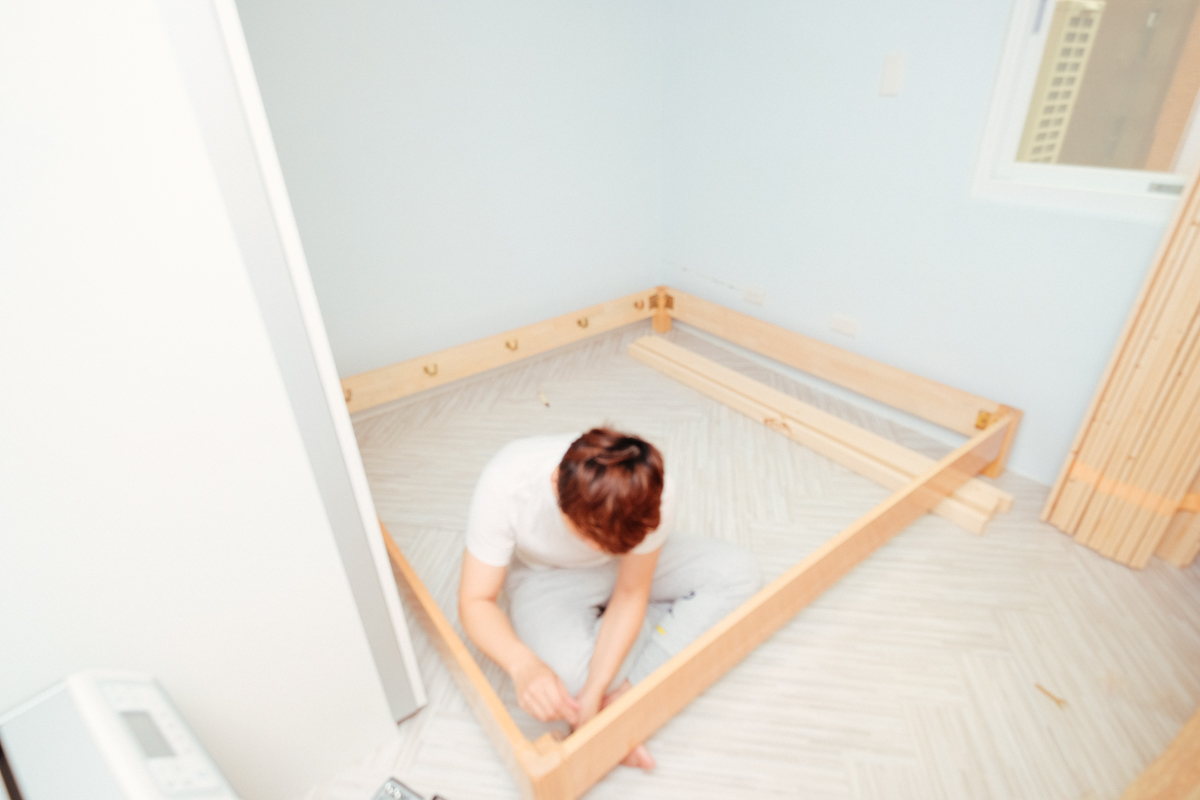 在拆床架時,發現床架的組裝設計真的很簡單,沒幾分鐘就拆完了,臥房超清爽的。