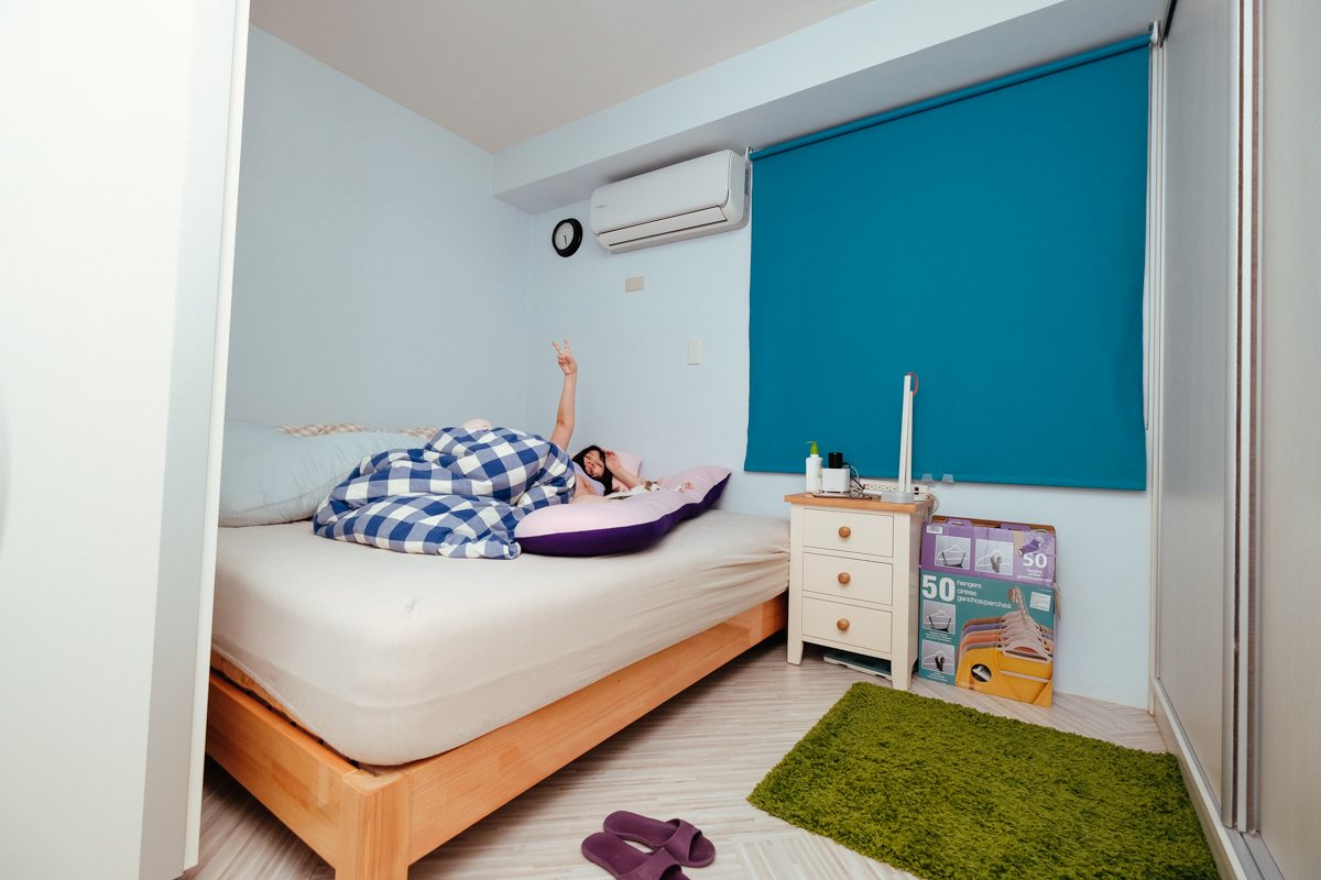 臥房又煥然一新了,換這個床架有幾個選擇考量,第一是沒有床頭床尾,第二是床架高度比原本再更低一些方便孕婦上下床,之後抱湯包也方便一些,最後則是床底有 10 公分預留高度空間讓掃地機可以進入清潔,床底無論如何還是要留有空間可以清潔比較好,不然久而久之那灰塵累積可是很驚人,而且太封閉床底的濕氣會去不了,讓床架發霉或是床墊也更容易有潮濕感。