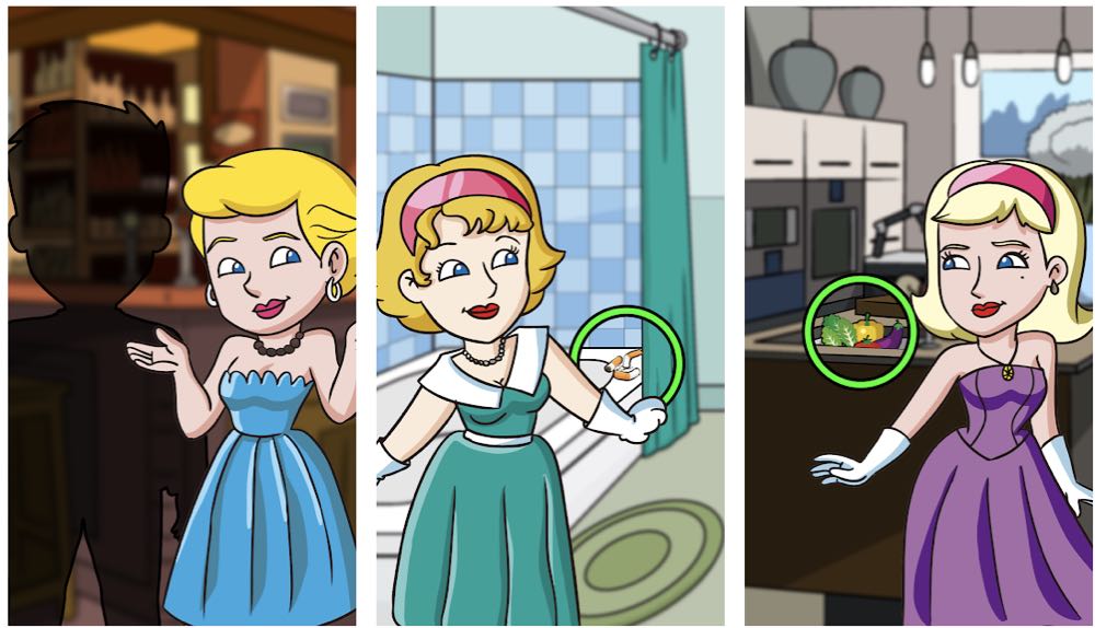 這款 app 在 iOS / Android 雙平台上都可下載,共分有 20 多種場景故事,玩家能夠藉由上下圖來發現哪裡不同,每一個故事會再分成 10 個不同地方,分別有 3-4 個不同之處, 玩家不只能找出上下圖哪裡不同,其中更有一些可疑的外遇跡象!