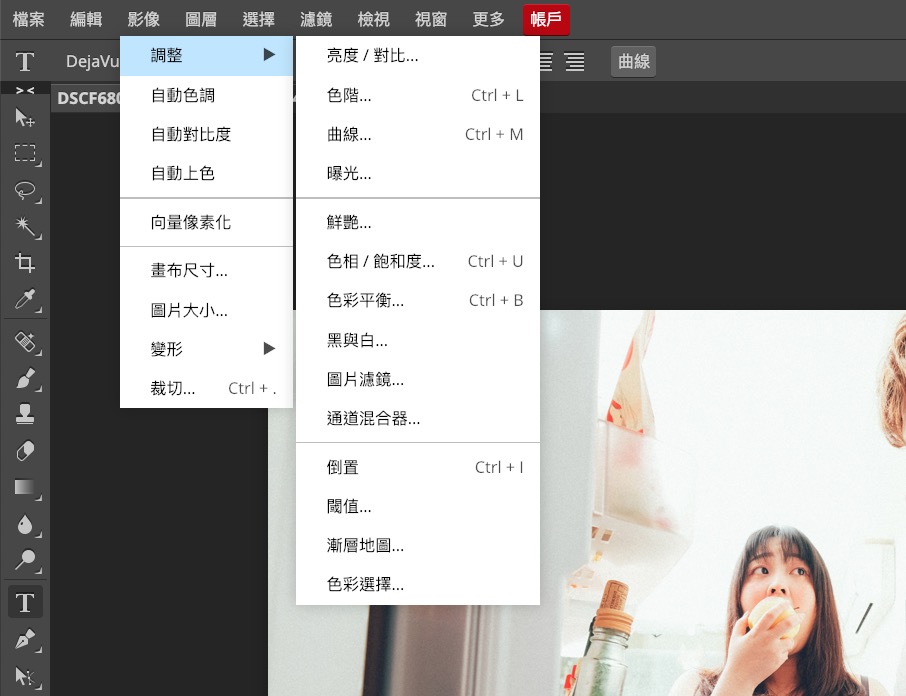 影像調整的部份也幾乎是和 Photoshop 有 87 分像,但是做成線上版有個好處,不用消耗你電腦的效能。