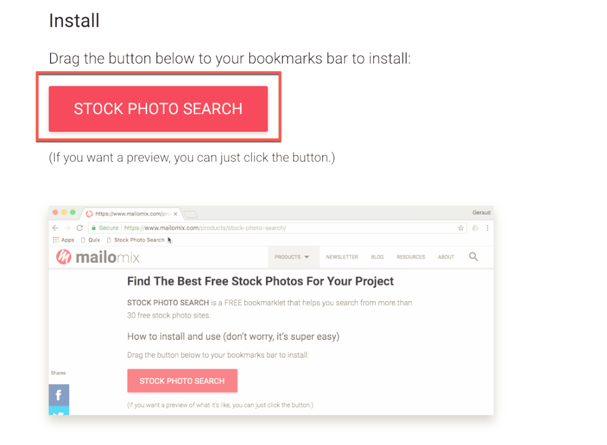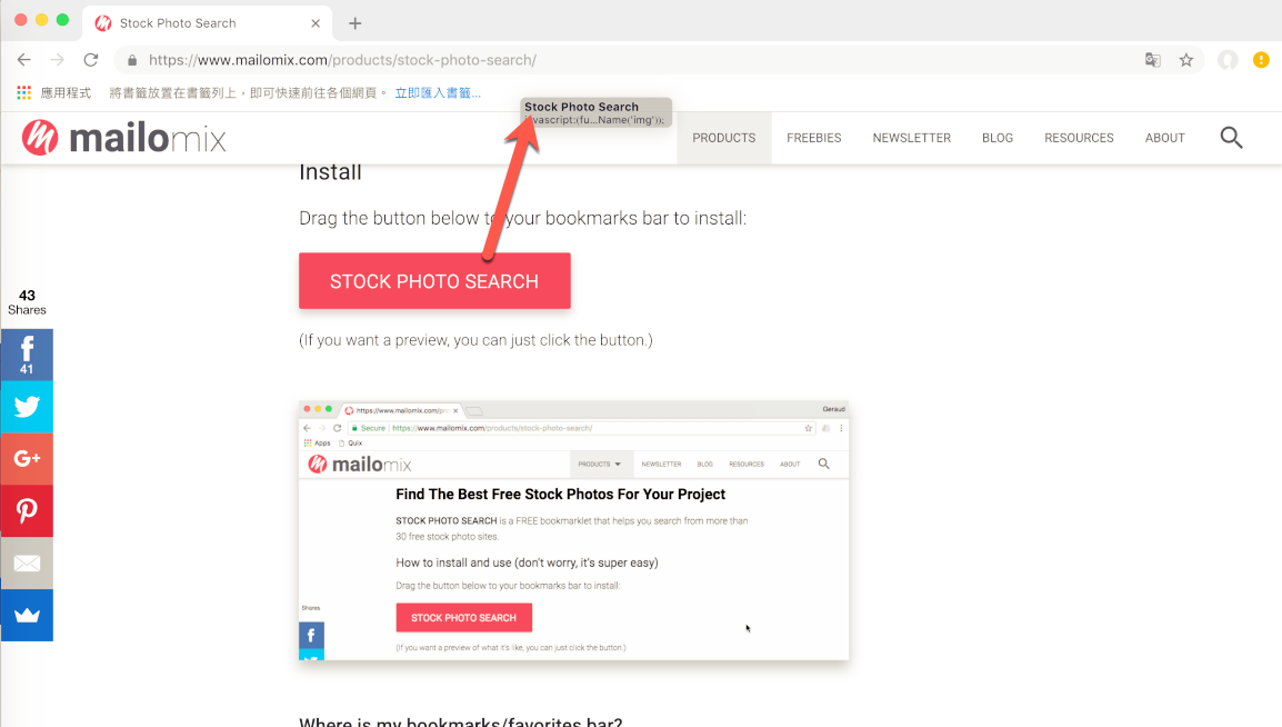 如果有常在使用的話,也可以直接將按住那個按鈕拖曳到你的書籤列上,就可以直接點擊書籤來開啟搜尋視窗。