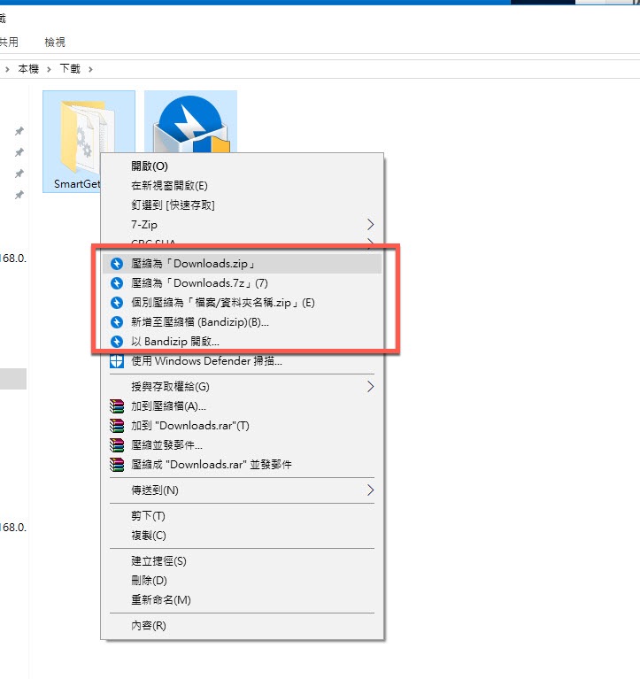 以壓縮檔案來說,預設是壓縮為 zip 或 7z 這二種格式二選一,其中他有一個很方便的功能是,如果你想針對多個檔案個別的進行壓縮,而不是打包成一個的話,他就有一個「個別壓縮為」的功能,非常好用。