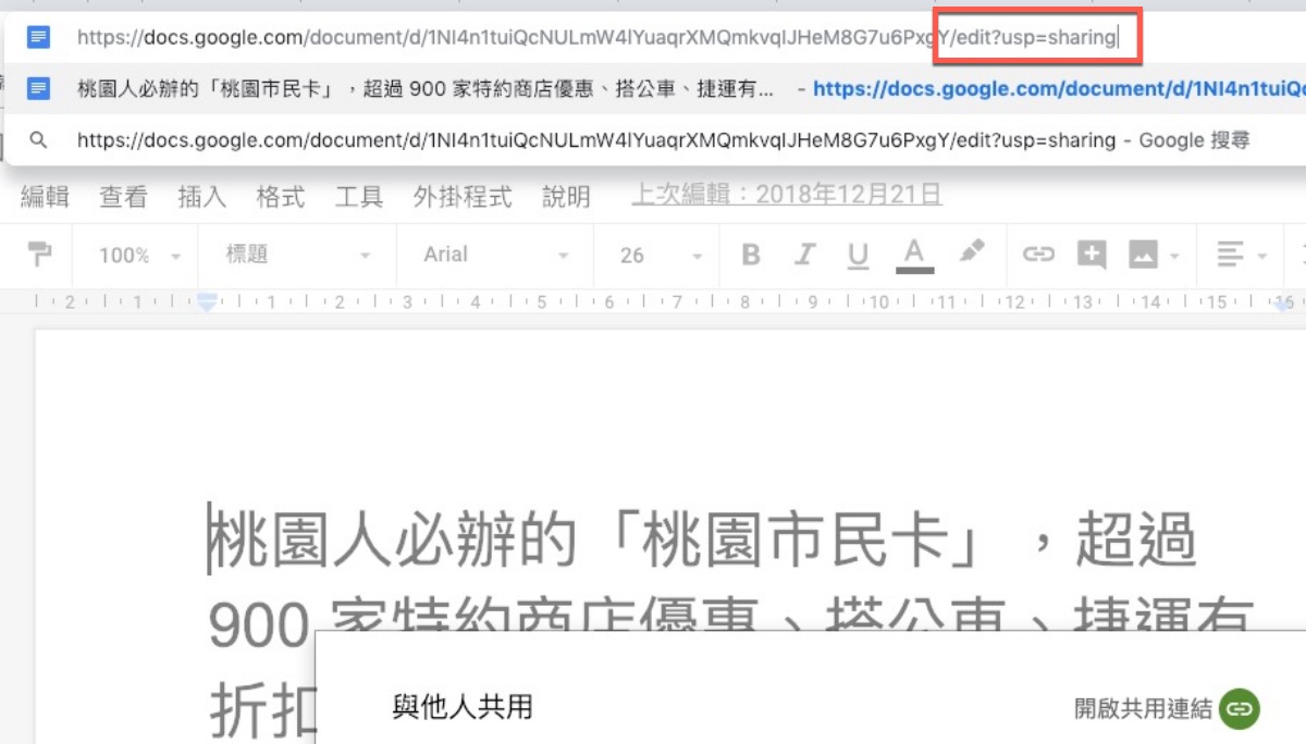我們剛剛獲得的共享連結最後綴會看到是「edit?usp=shareing」,我們可以將他替換掉。
