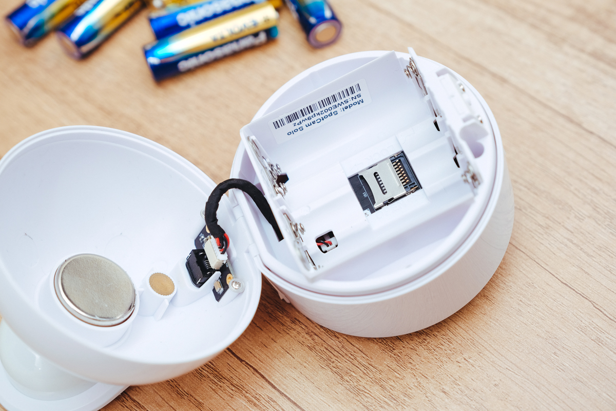 裝設電池使用,很多人可能以為會撐不了多久,這邊阿湯跟大家順便說明一下 SpotCam Solo 的運作方式,前面有提到搭配了被動式紅外感測器(PIR)來偵測畫面,簡單的說,會觸發錄影只有在偵測到有人事物移動時,平常若沒有動靜時是不會啟用錄影,耗電的僅有維持 Wi-Fi 連線以及 PIR 的偵測,或者像是使用手機 APP 連線查看畫面,所以其實用電池還是可以使用很長一段時間,以全新電池來說一般可以觸發 1000 次,如果你想偵測的畫面並不是非常多動靜但需要長時間監測的話,用 SpotCam Solo 應該能夠 3 個月左右或以上再換一次電池(當然要看你使用的量)。