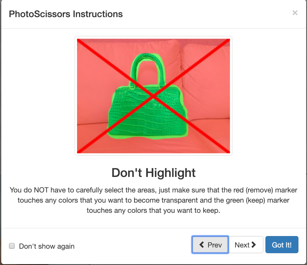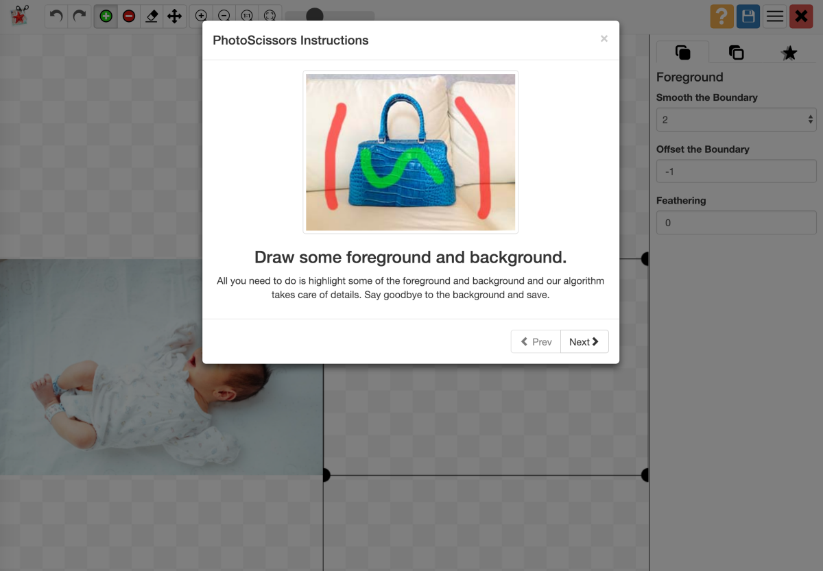 他會簡單的說明該怎麼使用,不會很難,在想要去背的主體畫上幾條綠線,要去掉的背景使用紅線就可以了。