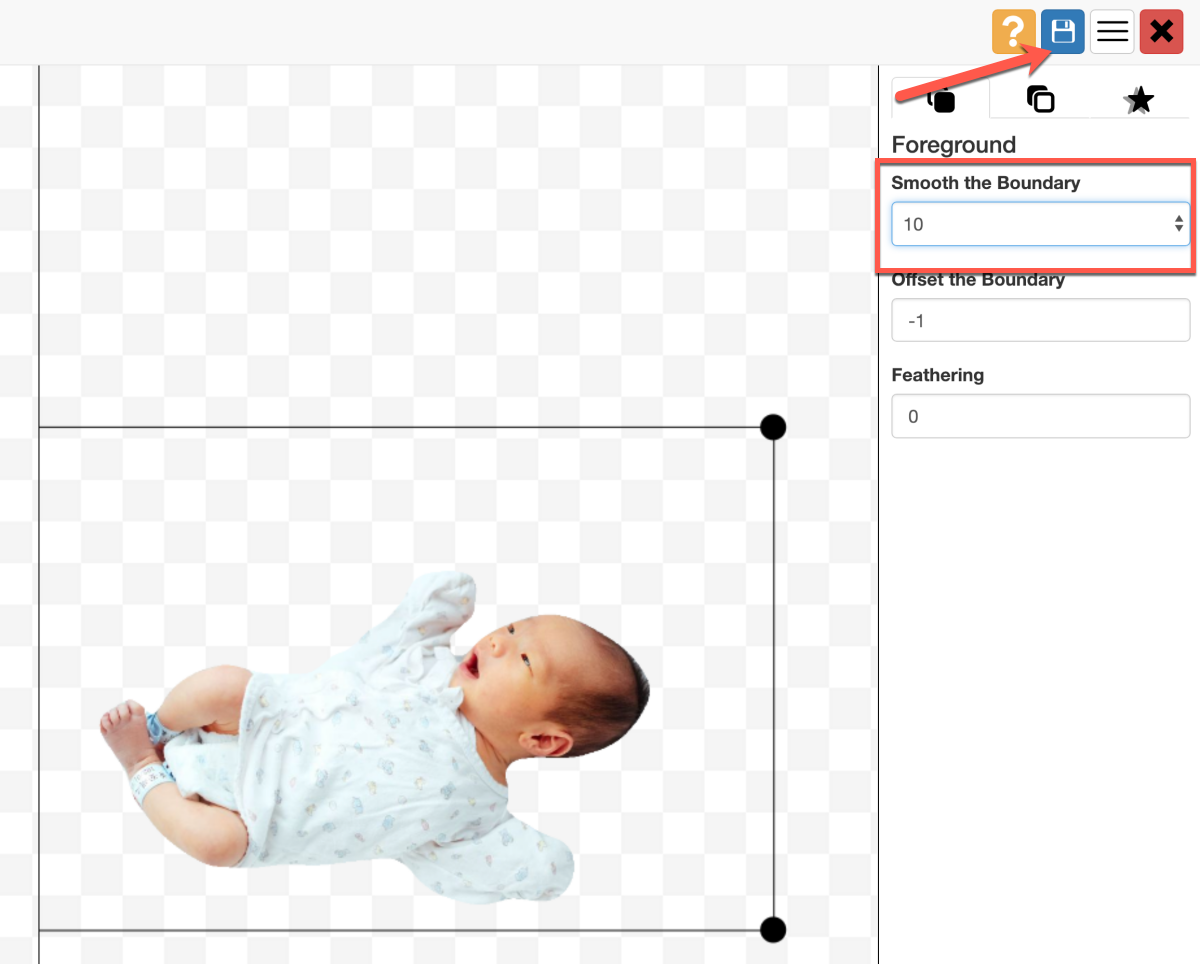 最後,有些邊緣可能容易有鋸齒,這時在存檔前,可以調整一下 Smooth the Boundary,也就是將邊緣平滑化,最大可以調整 10 級,大家可以選擇到一個覺得差不多的程度就可以右上角點擊儲存了。