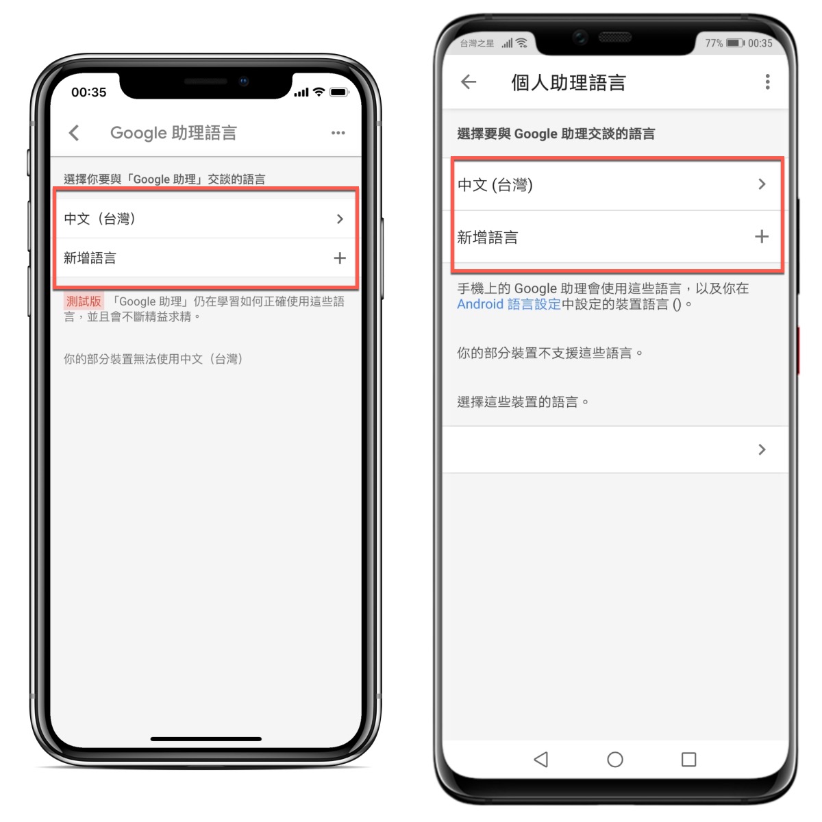目前設定方法有一點點的麻煩,因為你必須準備二個系統的手機,分別是一支 Android 手機以及一支 iPhone,透過二支手機的交叉設定才能將 Google Home 或 mini 變成中文(台灣)這個語言來使用。