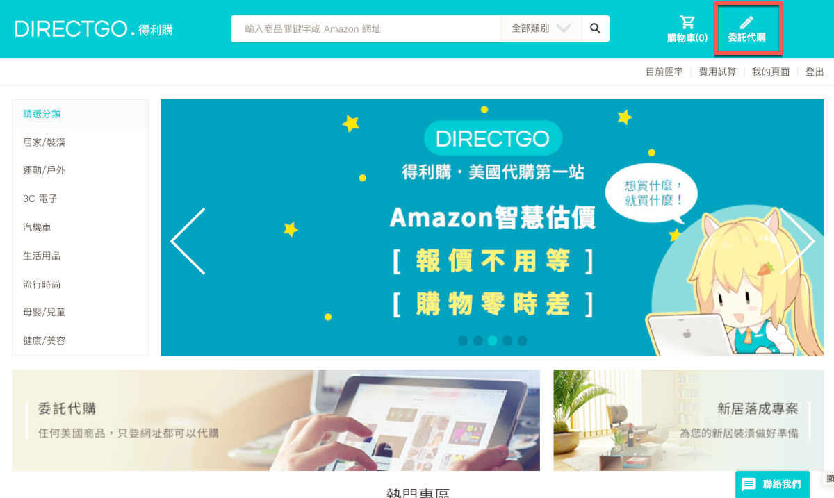 註冊會員後登入,點擊右上角的「委託代購」。