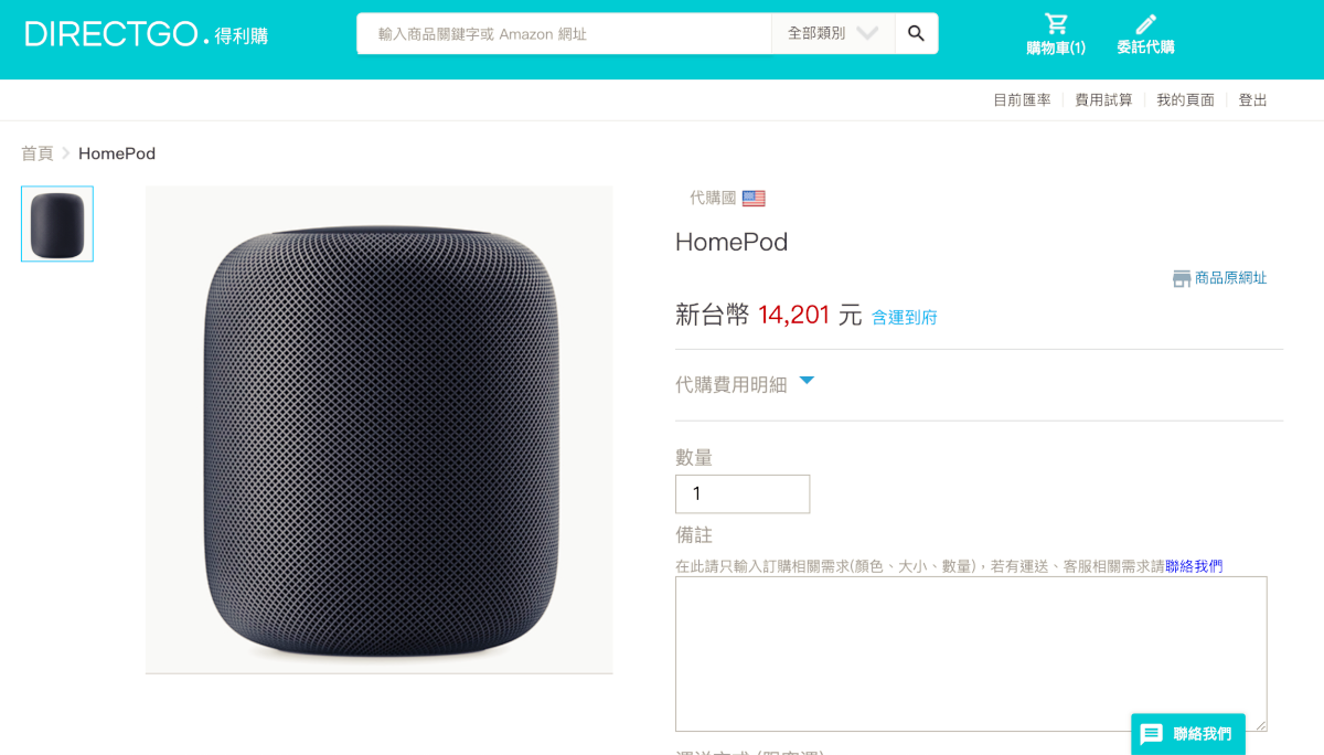 阿湯收到 HomePod 的報價為 14201 元,Google Home 則是 3952 元,價格跟一般個人代購的並沒有太大差異,但是多了很多保障,透過網站下單有憑有據,也有在台灣註冊公司,如果收到的商品有問題,他們也會做為中間的橋樑幫你與美國賣方溝通,如果你英文不 OK 的話,就完全交給專業的來就對了,各方面來說都比起一般個人代購安心不少(畢竟網路詐騙真的很多啊),所以價格即便比一般代購貴一些些,阿湯仍然會因為比較安心而透過得利購下單(嗯,所以我下單了..)。