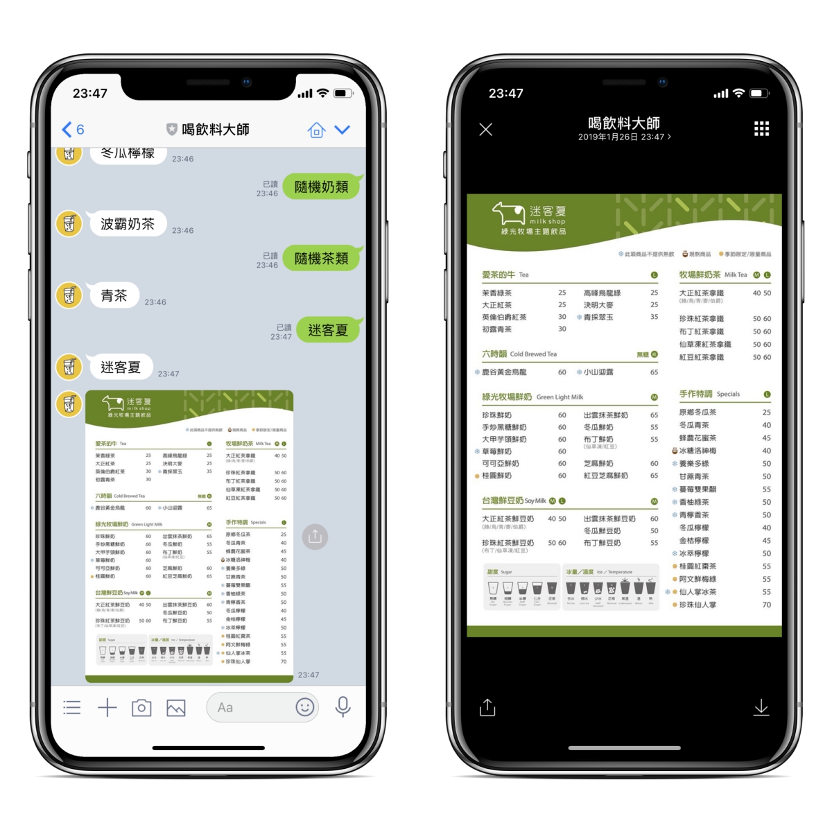 以迷客夏來說,輸入迷客夏後就會顯示菜單,而且還不是隨便拍拍的那種,非常清晰的菜單畫面可以查看。