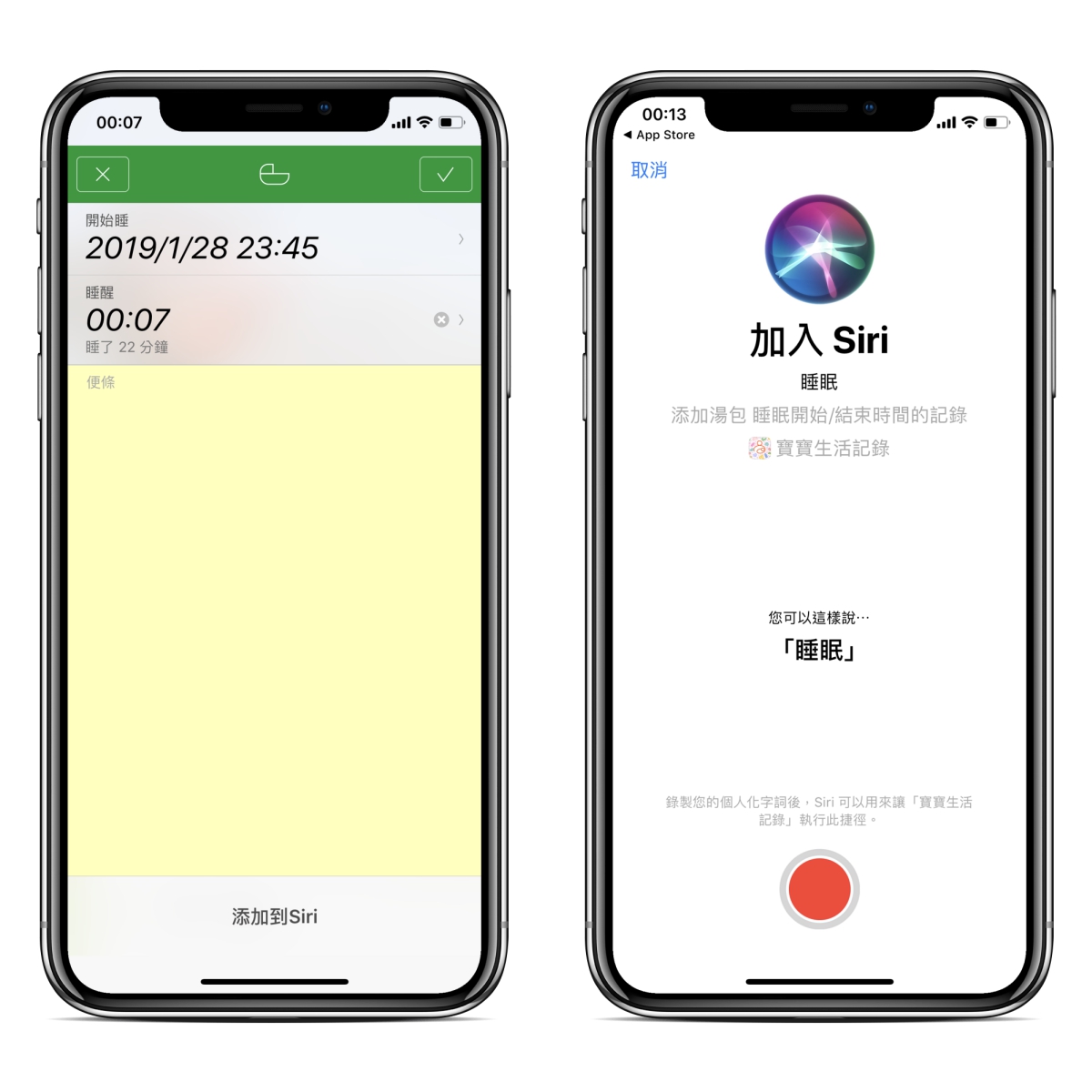 寶寶睡眠時間的部份,除了手動設定之外,還能透過 Siri 捷徑的設定後,直接用 Siri 來開始/結束寶寶的睡眠時間,用 iPhone 會多了一點點的便利性。