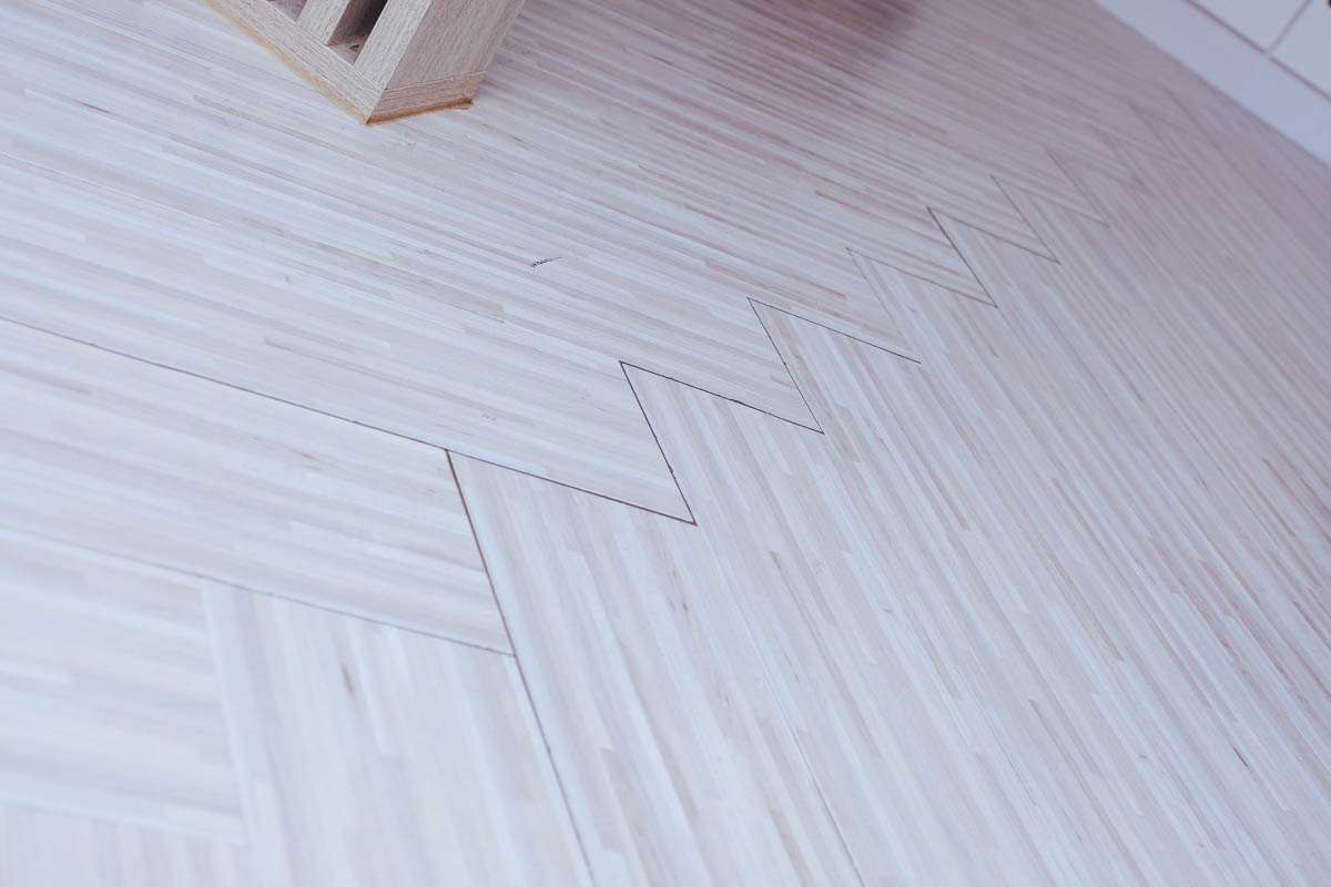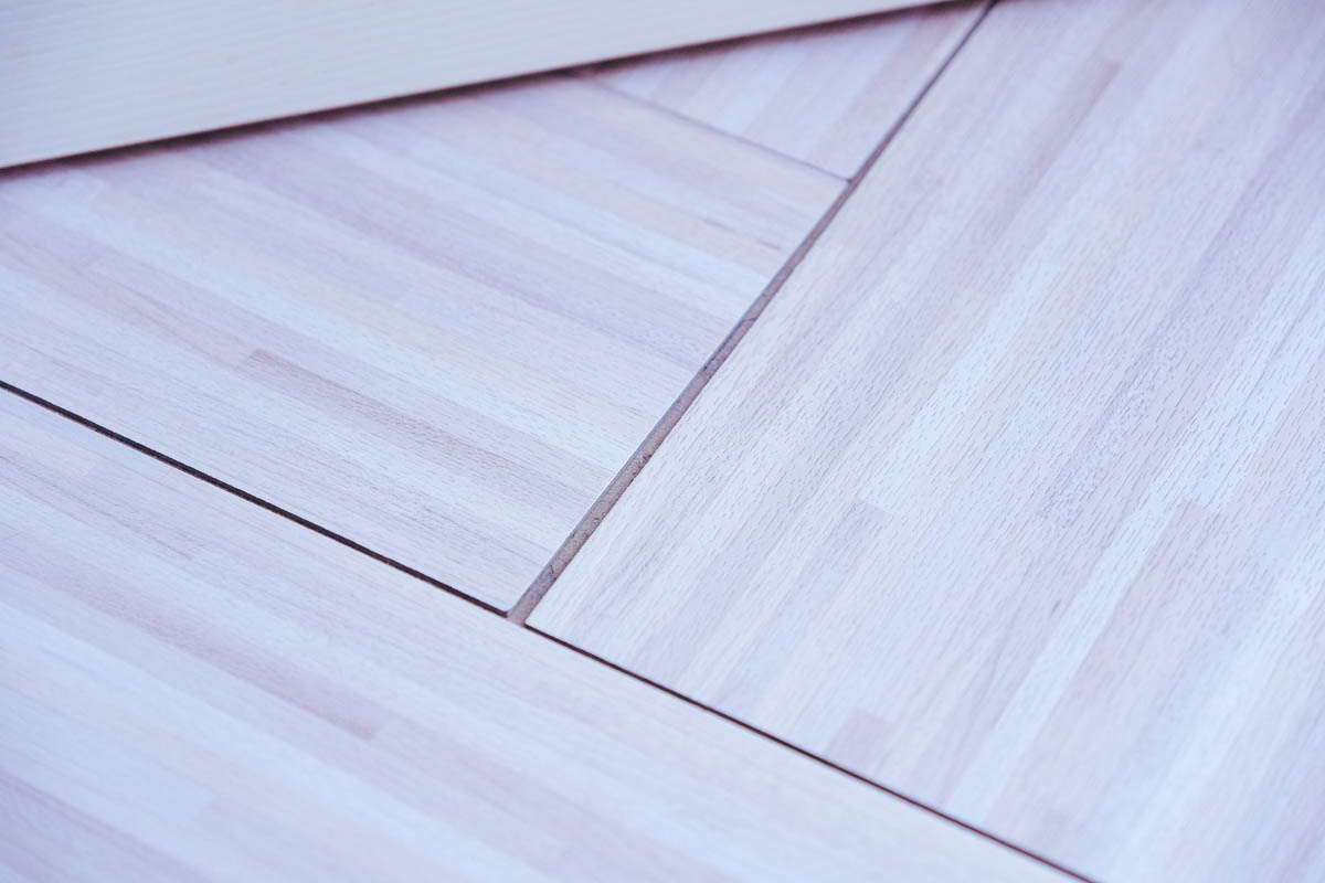 第二種是正常的交丁拼法,不過阿湯並不是用 1/2 來拼,而是隨意的間隔不同長度,阿湯覺得稍微不規則一點可以讓地板的紋路看起來更好看。