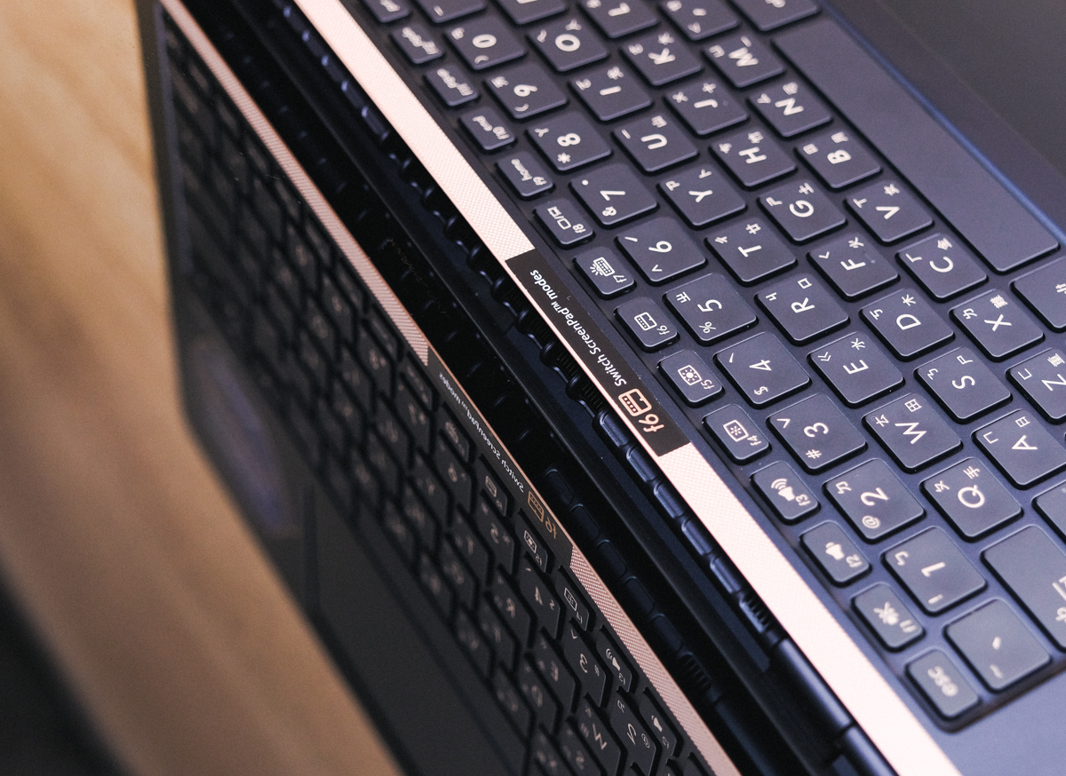特別在 F6 按鍵的上方貼了 一張 ScreenPad 的提示,可以讓我們用 F6 來切換使用模式,後面阿湯也會和大家詳細的分享。