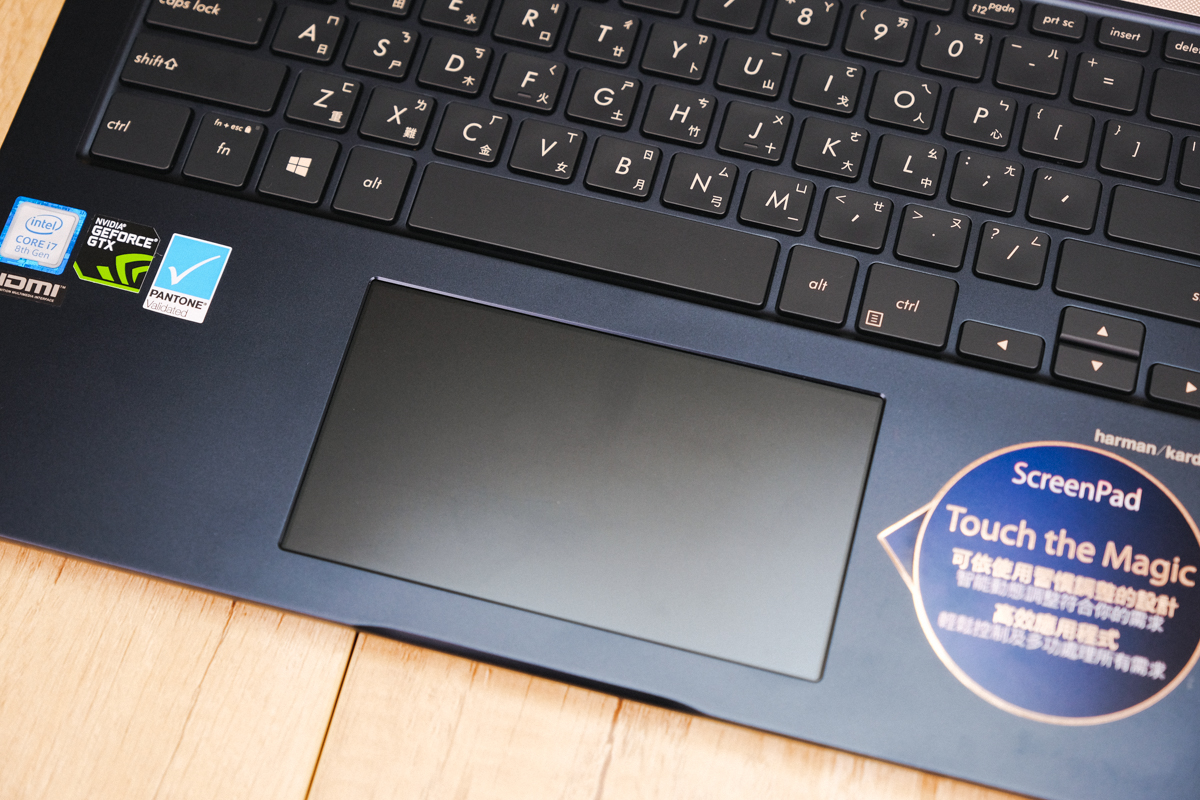 ZenBook 14 Pro 搭載了 14 吋的螢幕,但由於窄邊框的設計,螢幕占比高達 86%,比 ZenBook 15 Pro 再高上 3%,算是非常驚人,最特別的還是觸控板區的 5.5 吋的第二螢幕 ScreenPad 智慧觸控板,可以運用的方式不少,而且是可以增進工作效率的好幫手(當然也可能會拖累你,往下慢慢來看就知道)。