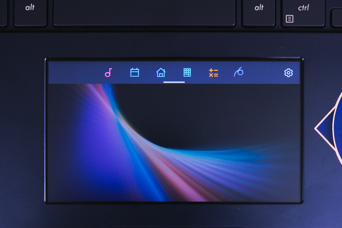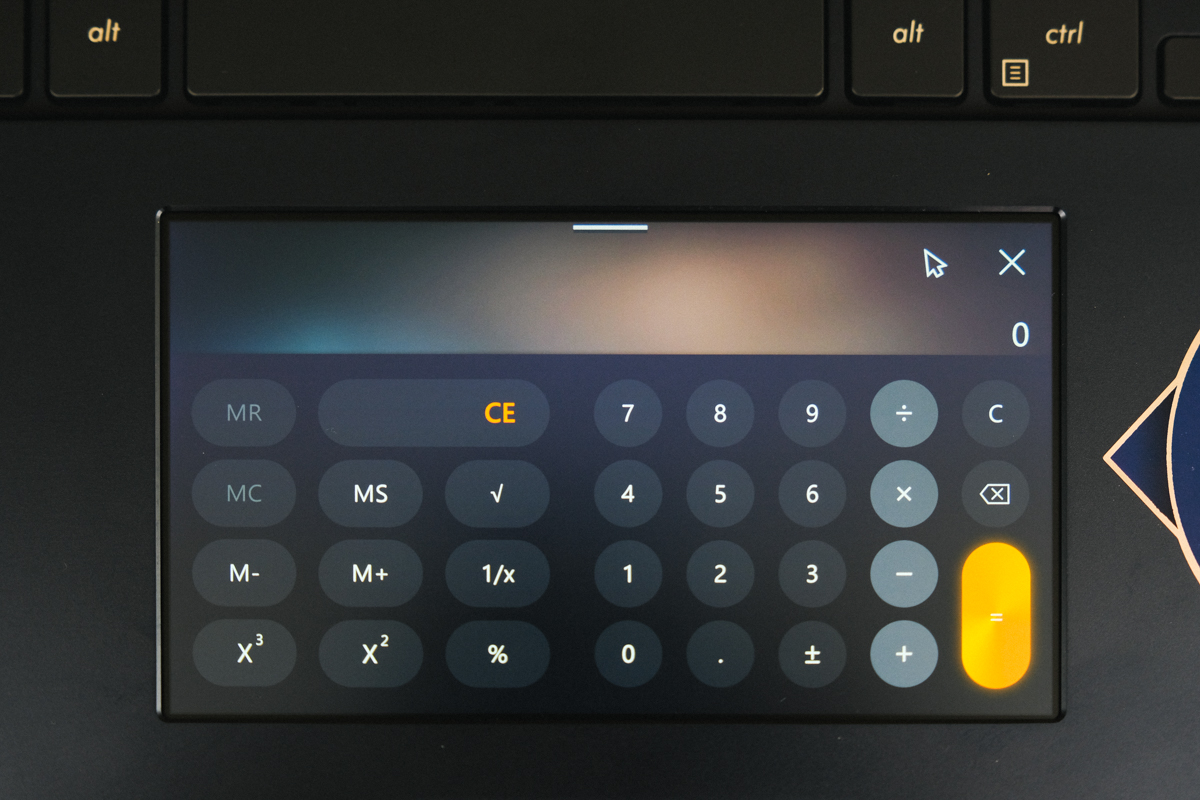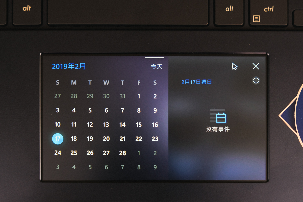 但做為 ScreenPad 使用時,除了有各種方便實用的小工具可以搭配之外,同樣可以當做觸控板操作,可以說是二合一的進階觸控板,如果想要選擇工具只要下拉就會出現。
