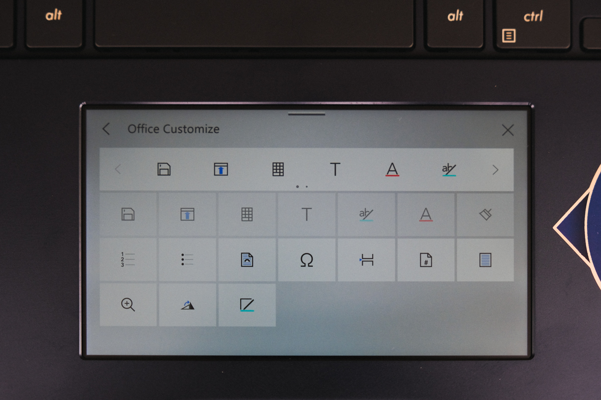 如果你以為 ScreenPad 能做的就這麼簡單,那就大錯特錯了,除了內建的一些功能外,ScreenPad 還支援部份應用程式,像是 Office、Adobe 等,以 Adobe 來說可以直接使用 ScreenPad 來簽屬 PDF 文件,而 Office 不論是 Excel、PPT 或是 Word,都可以將 ScreenPad 做為快速工具列使用。
