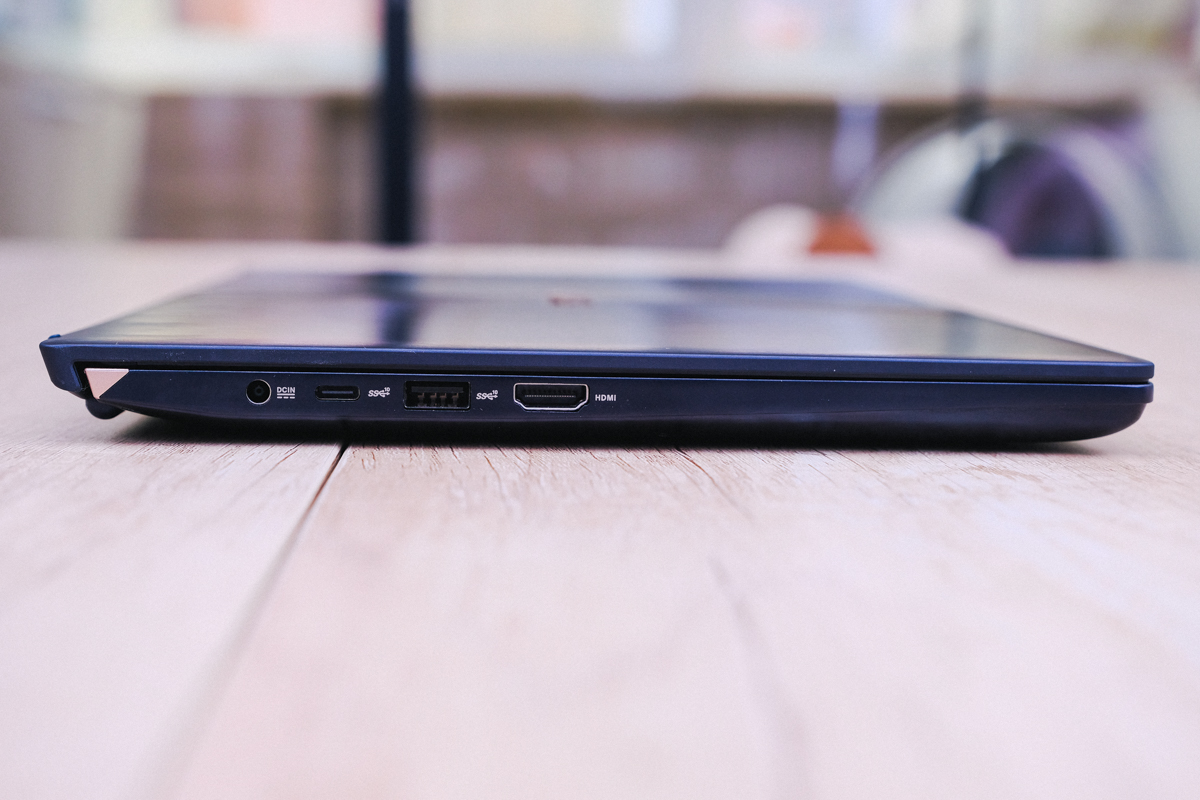 側邊連接埠分別為電源 DCIN、Type-C™ USB 3.1 Gen 2、Type-A USB 3.1 Gen 2、HDMI
