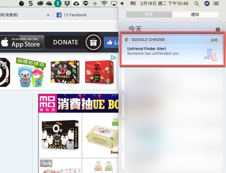 平常在瀏覽器右上角的工具列中就會有一個圖示,點擊後可以查看目前你加入了多少好友或是被多少人移除好友。