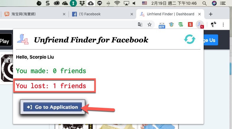 這時你可以點擊 Go to Application 去查看誰解除了你好友。