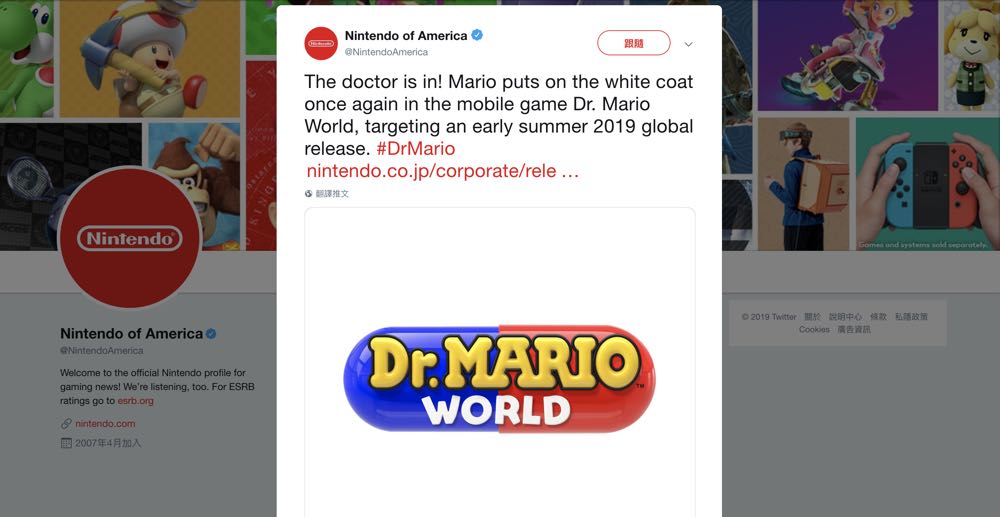 在《Dr. Mario World》中穿上白袍的瑪利歐可以說是兼顧著經典遊戲、任天堂設計風格與免費下載的多重吸引力,根據官網宣布,首階段將會在包括英、日等 60 個國家及地區推出,而之前預告會在 3 月推出的《 Mario Kart Tour》則是會向後推遲至 2019 年夏季登場。