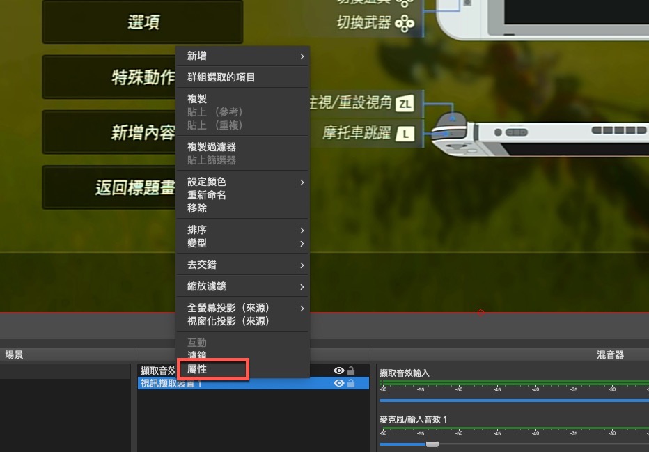 如果上述音效設定後沒動靜,可以試試進入到 OBS 的設定頁面,在音效裡,找到麥克風/輸入音效 1,在這邊同樣選擇你的擷取器名稱,再去試試看。