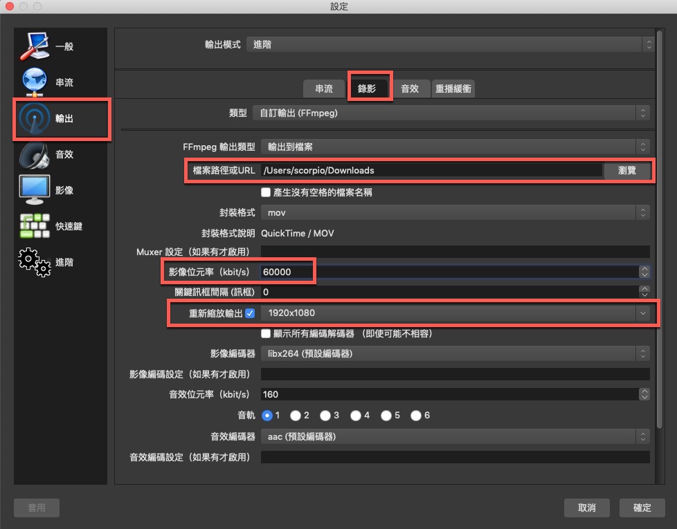- 檔案路徑:錄影的存檔路徑,可以依需求修改一下。