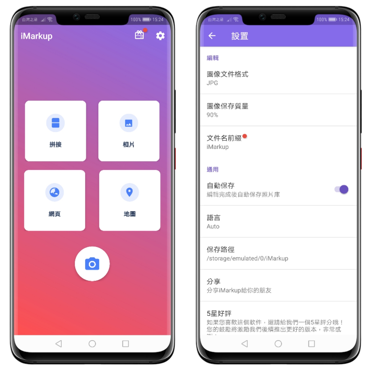 註:建議可以在設置裡將圖片保存質量設為 100%。