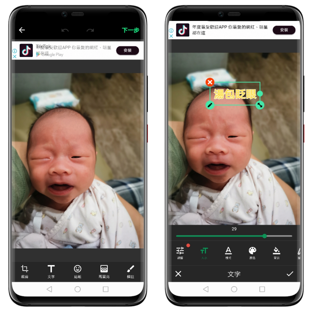 文字的部份可以調整大小、文字外框、陰影、背景,除了字型之外都能修改。