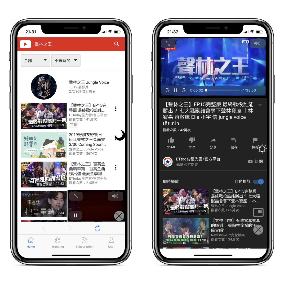 比如影片浮動小視窗,浮動後你可以繼續逛其他影片列表,按下月亮則是背景變成暗色系,更適合夜間觀看。
