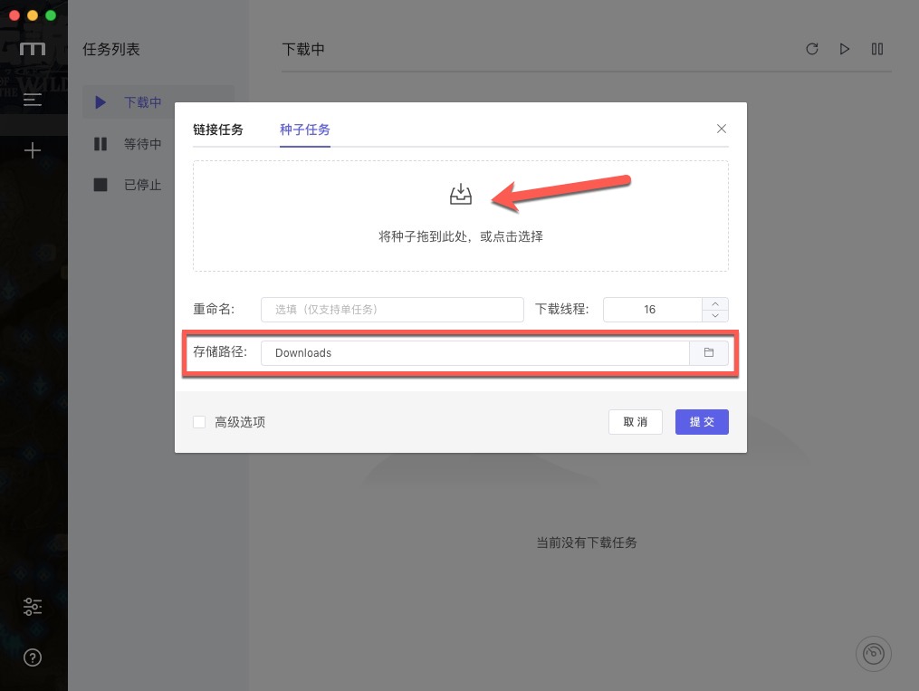 如果想下載 BT 檔案,也只要將 BT 種子拖曳進來,同樣設定好儲存路徑就可以了。