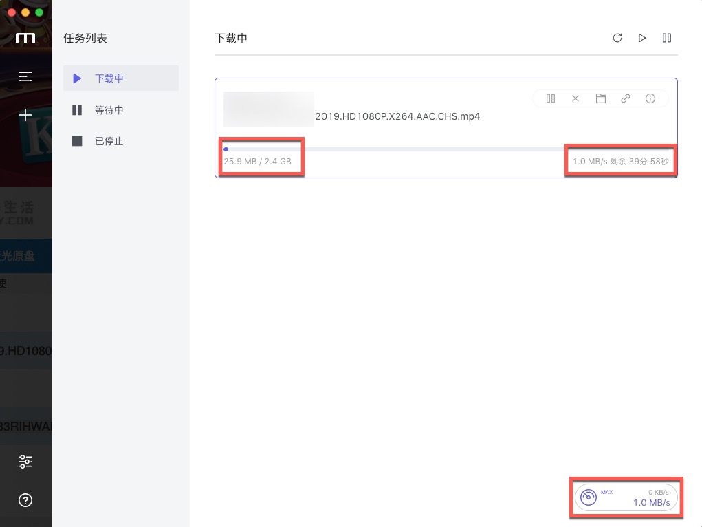 下載過程都可以看到進度以及速度,右下角則會顯示你全部的下載速度總和為多少。