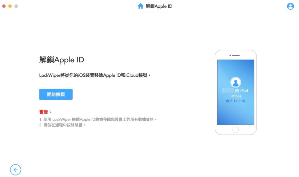 同樣的將 iPhone 或 iPad 接上電腦後開啟軟體,進入解鎖 Apple ID 功能。