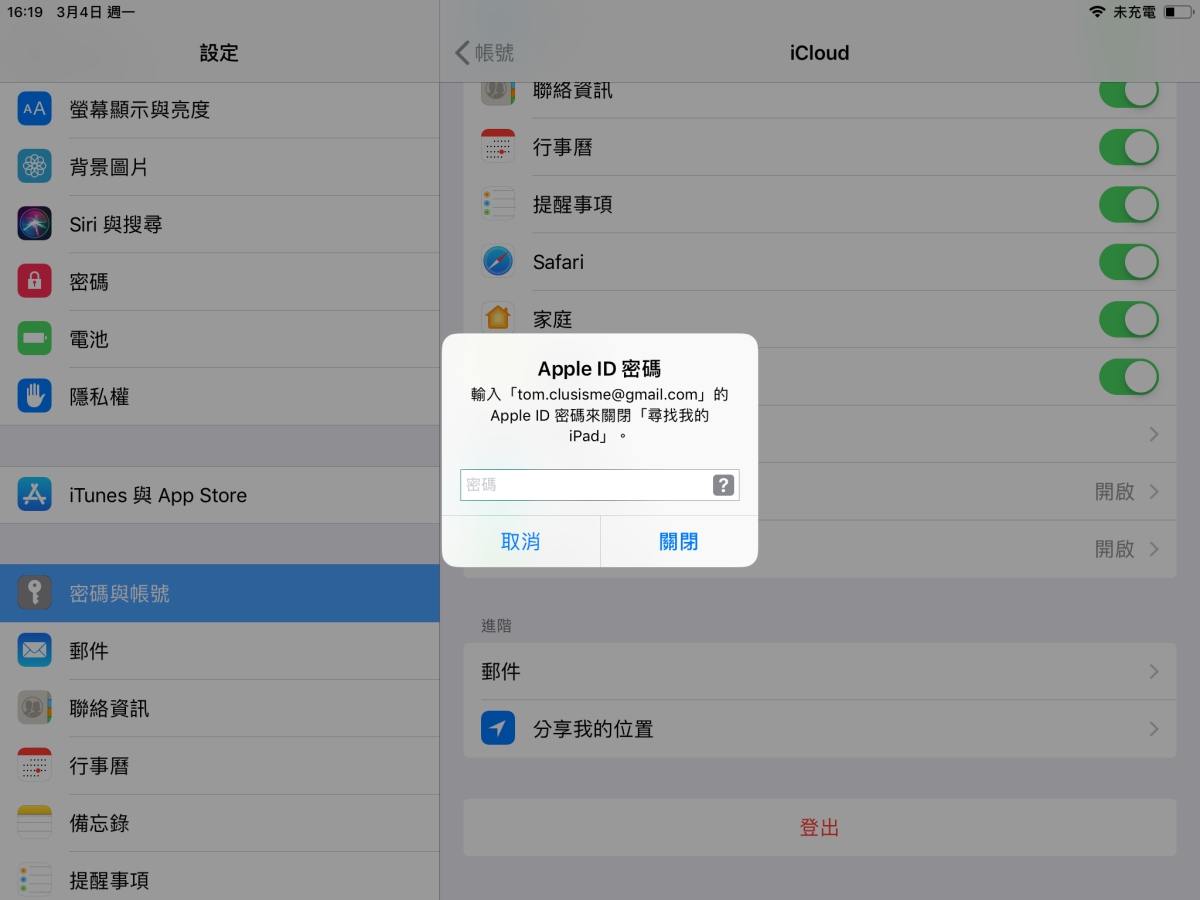 第二個則是在密碼與帳號中的 iCloud,但這個就需要輸入密碼才能移除了,如果要透過 iTunes 直接回復也是行不通的,同樣要使用 DFU 模式才行。