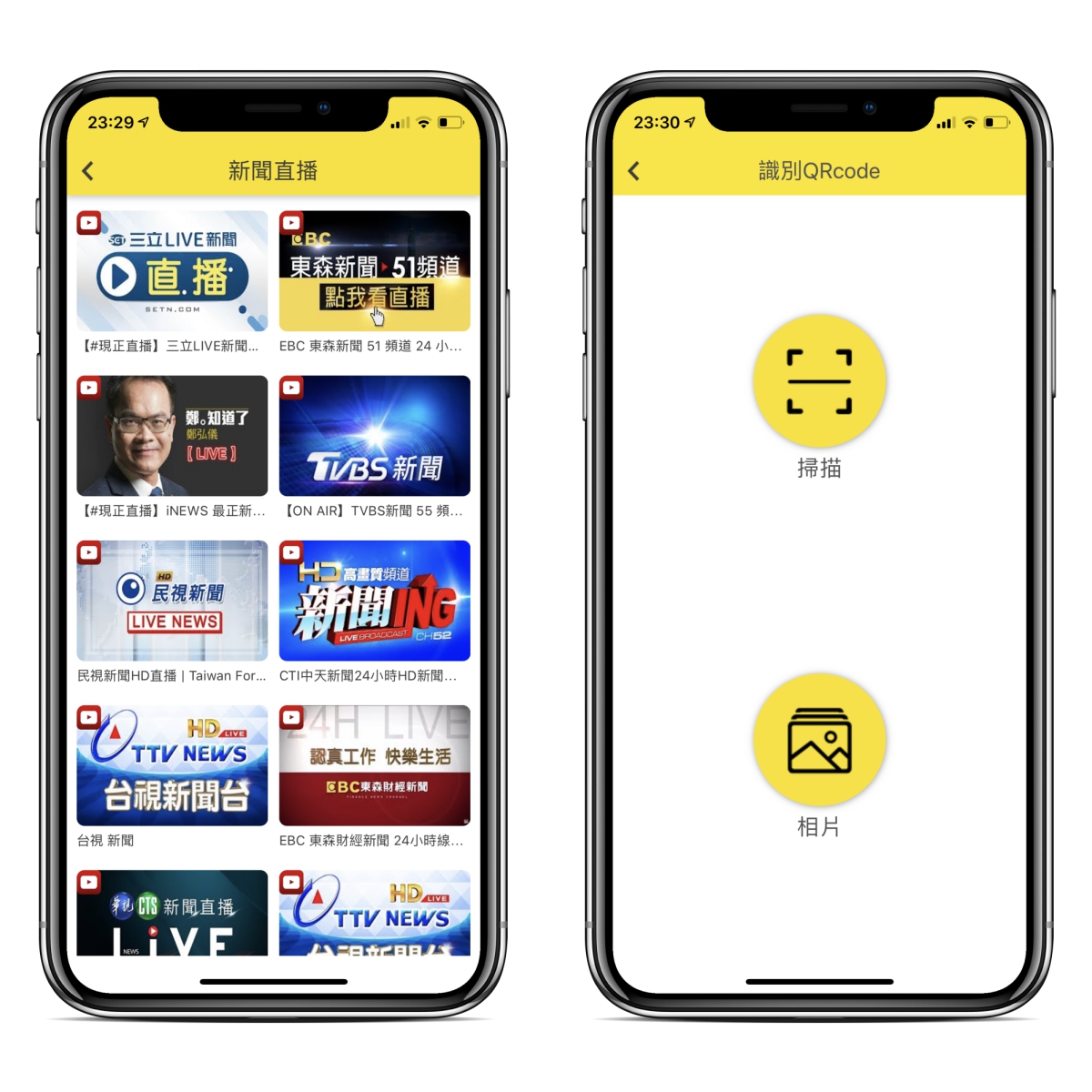 第四台的部份主要是搜集了在 YouTube 上有的新聞直播頻道,QR Code 就應該不用阿湯多說了,主要多了一個可以直接讀取 QR Code 圖片的功能,不一定只能用掃描。