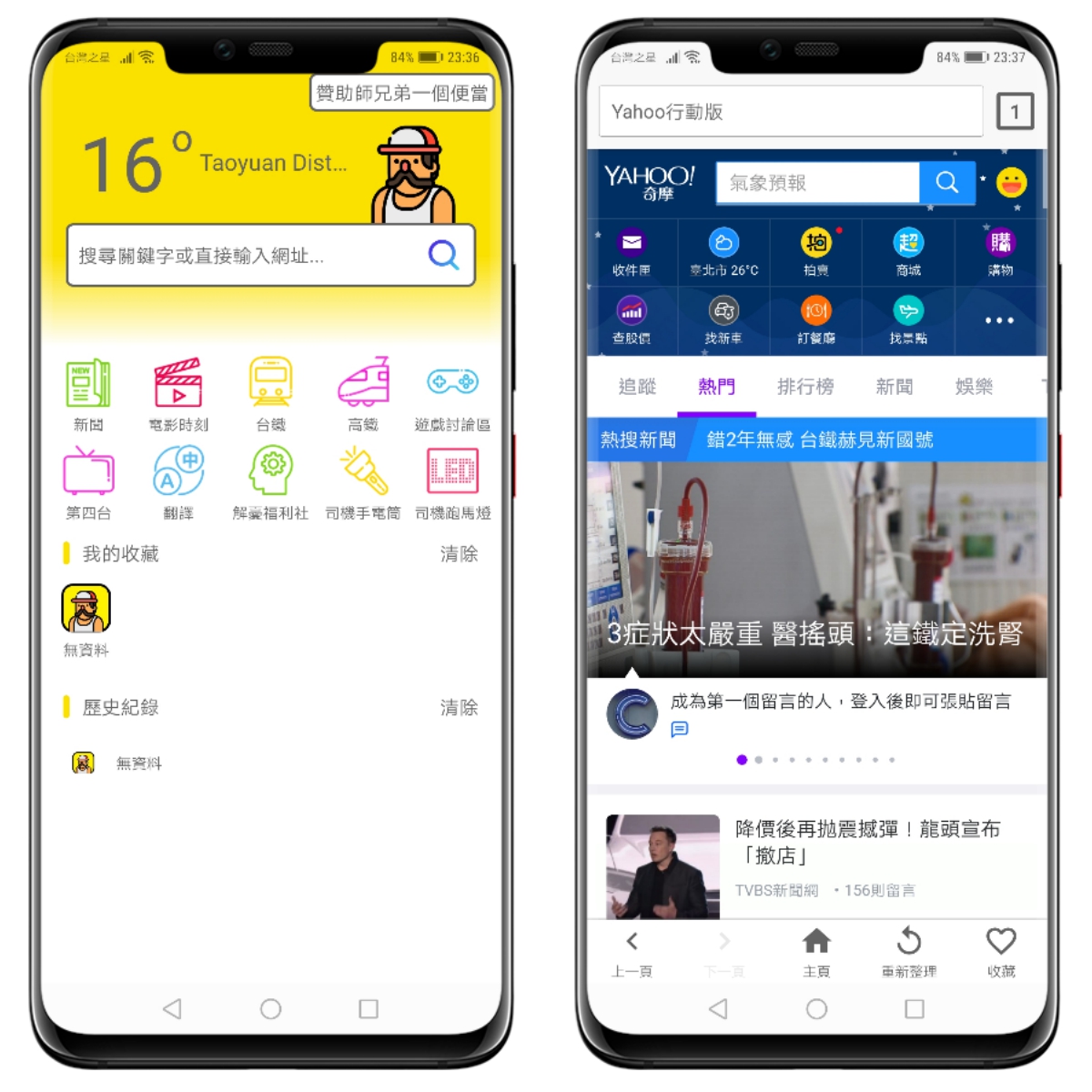 Android 版的部份,阿湯直接給大家看截圖就好,因為 Android 版本沒有像 iOS 版有獨立做一些功能進去,全部的內容都是直接嵌入網頁連結,如果你要用在收藏網頁,做法也是跟 iOS 一樣的,先找到要收藏的網頁後,然後加入星號就可以了。